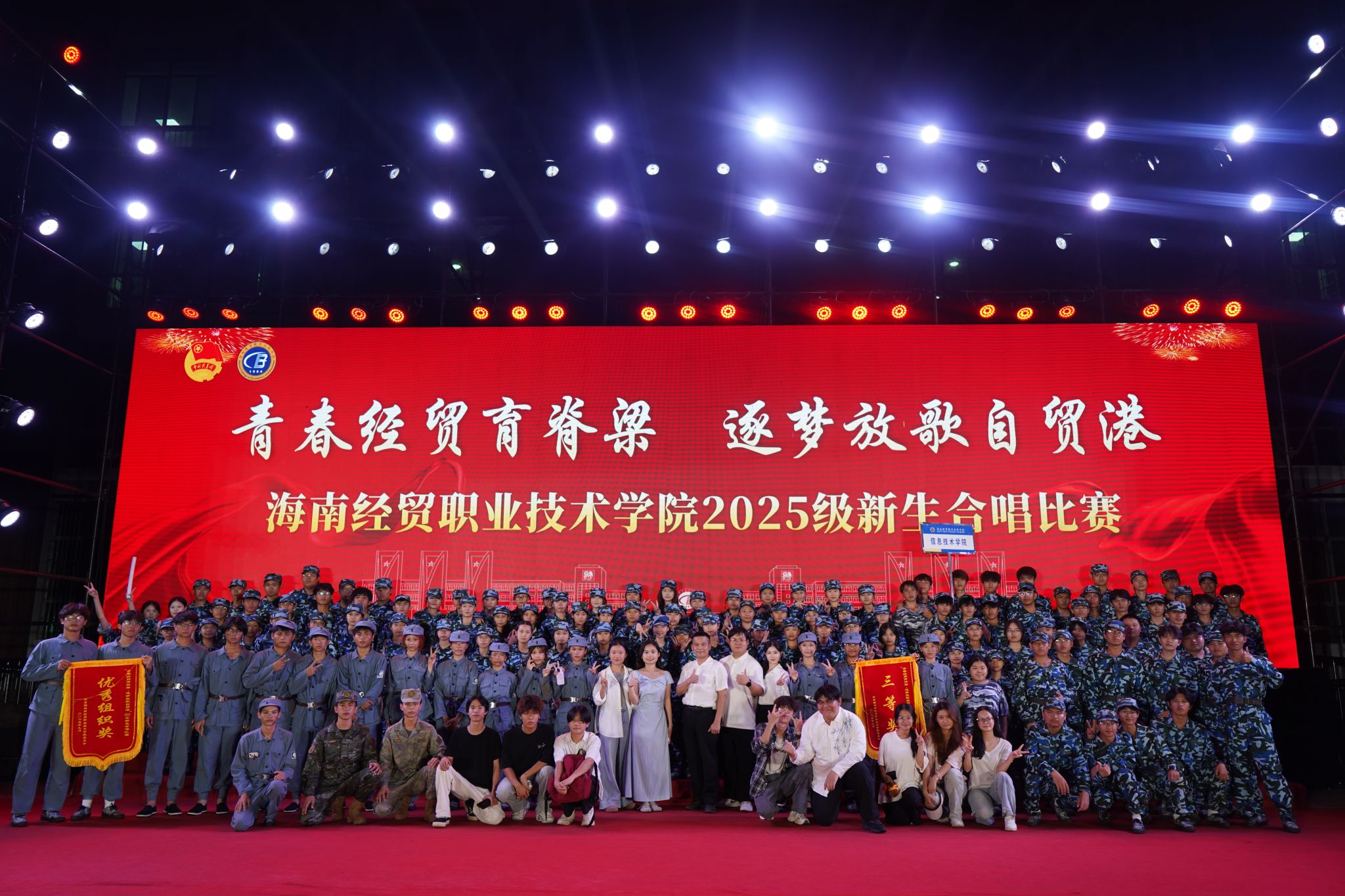 9月29日晚,sunbet官方网站新生军训红歌汇演在经贸广场启幕,sunbet新生以一曲《在太行山上》惊艳全场,融合精巧舞蹈与时空对话的创意演绎,最终斩获合唱比赛三等奖和优秀组织奖,用青春之声传承红色记忆。
