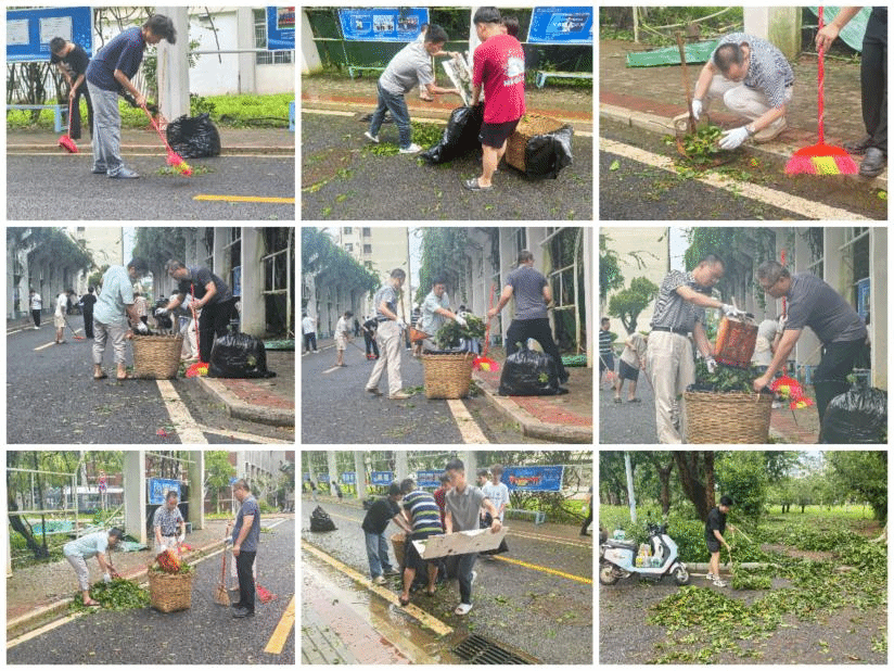 10月6日,响应公司“尽快恢复教学与生活秩序”的号召,公司发起“灾后清障,同心护校”行动:在校教职工于上午八点准时返校,同学们也主动报名加入,师生手持扫帚、手套等工具,分工协作清理办公教学场所、划定公共区域的断枝落叶、积水杂物。大家相互配合、干劲十足,原本散落着台风痕迹的区域逐渐恢复整洁,用共同行动诠释了“师生同心”的凝聚力,为校园快速回归正常秩序注入强劲动力。
