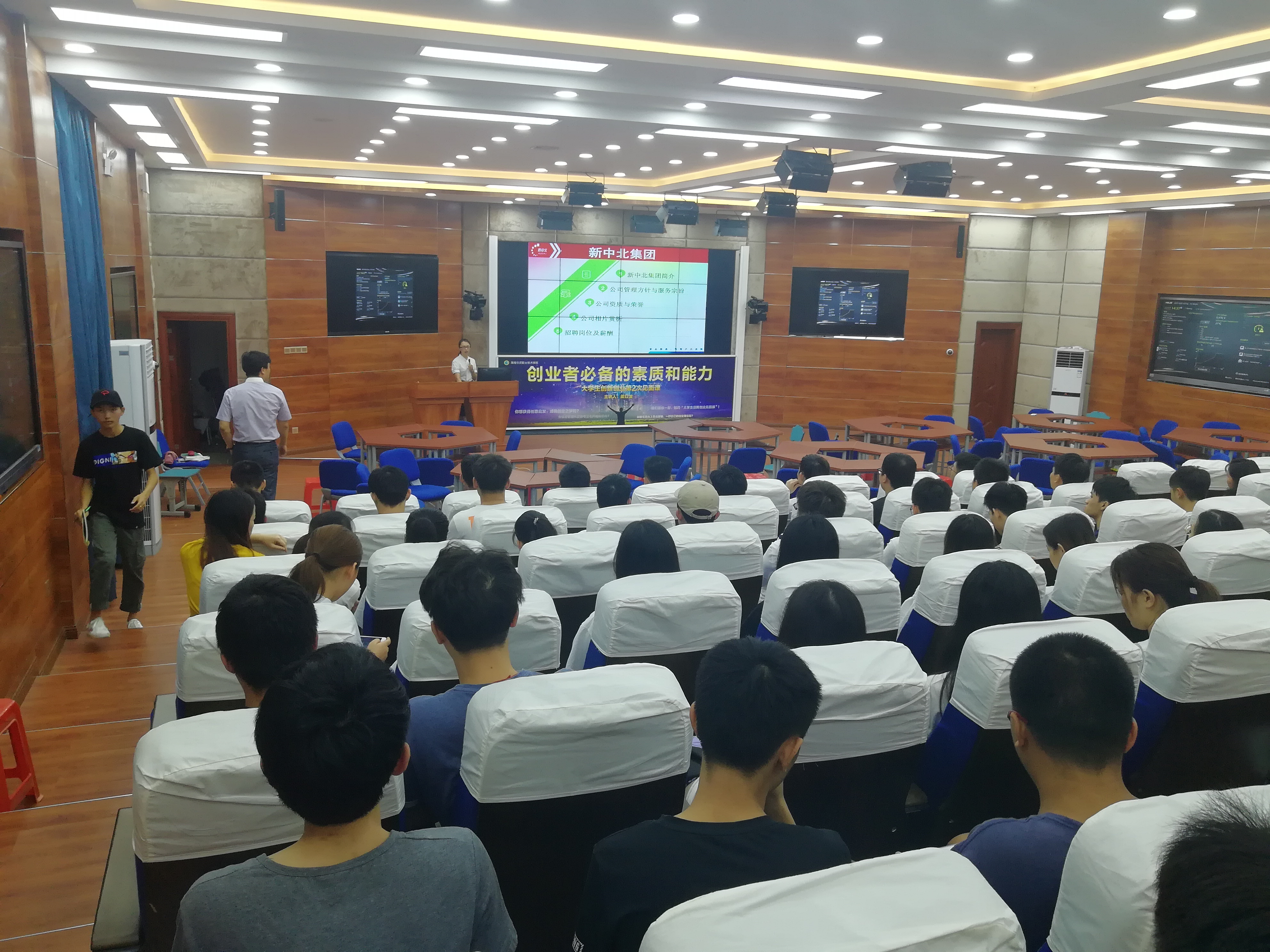 参加本次招聘会的企业有新中北集团海南分公司、中国平安集团广州分公司和杭州赢动科技有限公司。参加本次招聘会的员工来自工程技术公司2016届电子商务专业、计算机网络技术专业、移动通信技术专业等共150名应届毕业生。招聘会由单继周副经理主持,梁其钰老师进行现场组织与协调。三家企业都分别就企业概况、招聘岗位、员工待遇、晋升空间等方面进行了详细的介绍,应聘的同学对公司提供的工作岗位和职业前景产生了浓厚兴趣,在宣讲环节企业也给到场的员工提供了实用纪念品,同学们深切感受到来自企业的关怀。