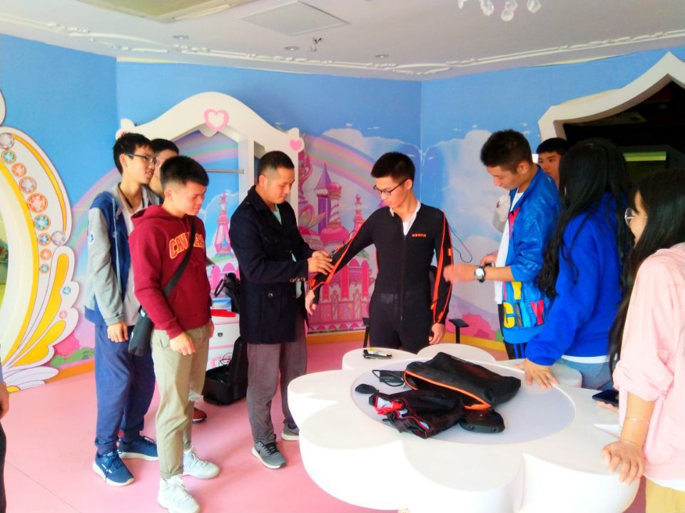 11月24日早我们又来到了广东轻工职业技术公司参观学习,经过对校园的简单的参观后,我们来到了由上海曼恒数字技术股份有限公司和广东轻工职业化技术公司合作建设的生态环境虚拟现实教学中心。公司的技术人员给我们上了一堂生动的VR专业课,通过高清的多面VR虚拟现实交互屏为我们展示虚拟现实技术的效果和多方面用途,受益良多。
