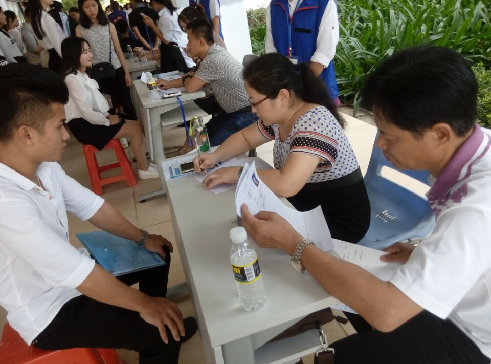 上午9时,2016届海南省毕业生供需洽谈会在主持人的开场白下拉开了帷幕。出席此次洽谈会开幕式的人员主要有公司领导、企业代表、公司大一员工,逐次由徐畅副书记、企业代表、毕业生代表分别上台致辞。开幕式在大家的热烈掌声中闭幕。