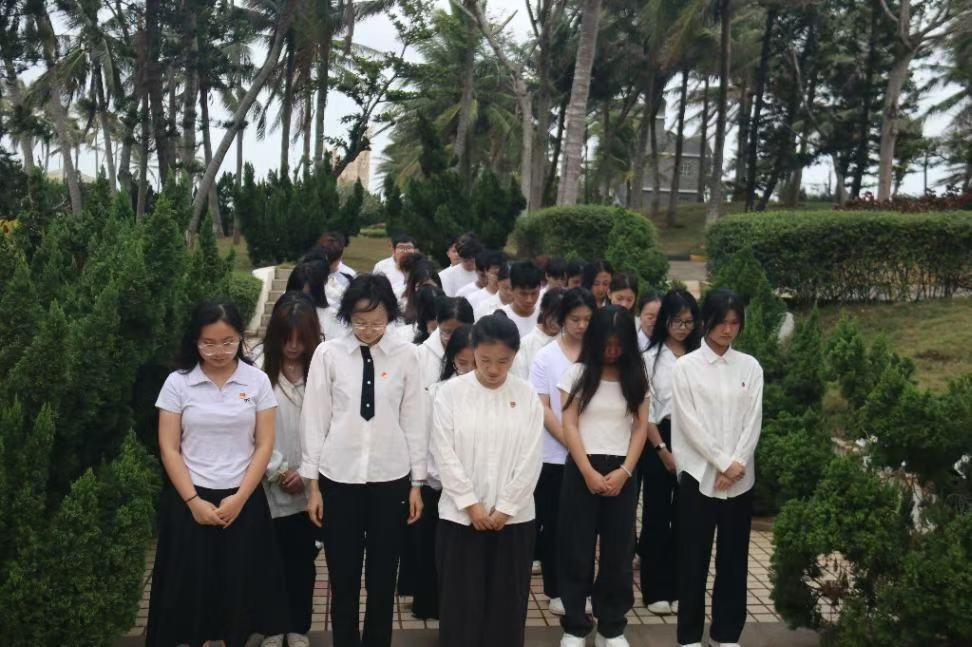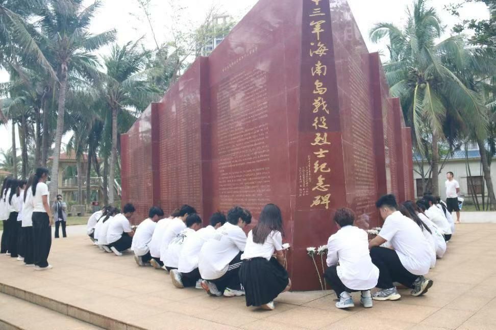 紧接着,全体成员前往第四十三军海南岛战役烈士纪念碑,这座纪念碑上刻满了英勇牺牲的烈士名单,他们用生命和鲜血谱写了壮丽的革命篇章,为后人树立了不朽的丰碑。大家手握鲜花,低头默哀三分钟,表达对烈士们的深切怀念和崇高敬意,默哀结束后,大家将鲜花放在纪念碑前,寄托着对烈士们的无尽哀思和崇高敬仰。