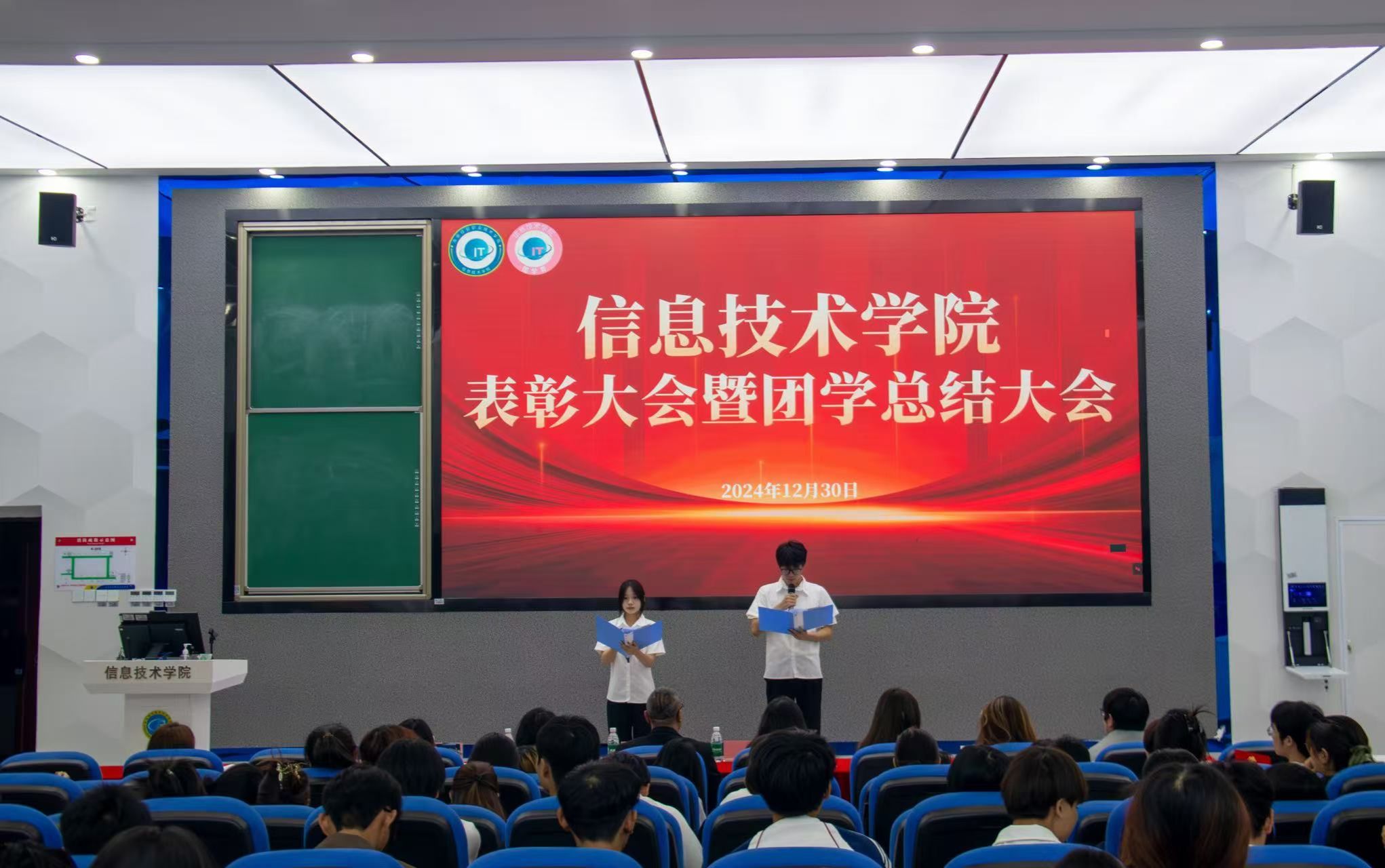 启航新程,续写华章。sunbet于12月30日在4-215召开表彰大会暨团学工作总结。本次大会由李鑫伟、周佳灿共同主持,信息技术公司党总支副书记黄守官、全体辅导员、全体团学成员以及获奖人员参加会议。