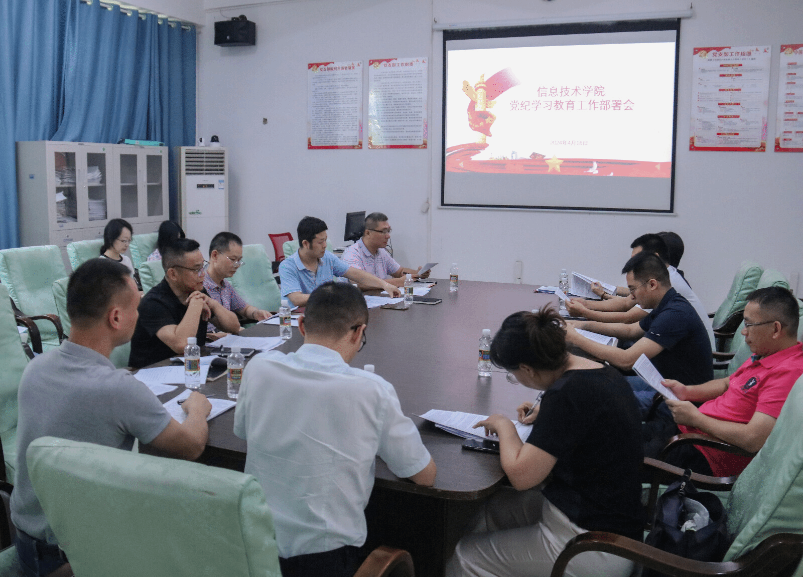 2024年4月16日中午,sunbet在4-213召开党纪学习教育工作部署会,会议由党总支书记符胜主持,全体师生党员参加。