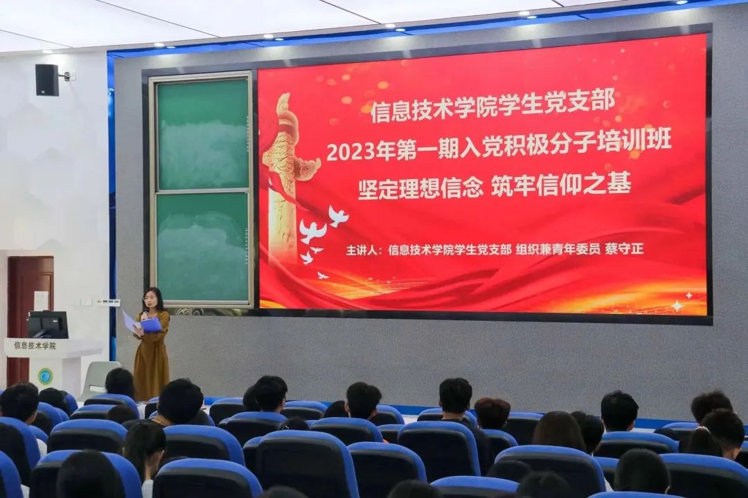 培训伊始,代晓明老师围绕“为中国人民谋幸福”的初心和“为中华民族谋复兴”的使命,告知学子们成为新时代合格党员一定要不忘初心,牢记使命,真正做到守初心、担使命、找差距、抓落实。根据入党的相关知识与制度,代老师讲述了申请入党的条件、发展党员的有关规定,同时带领大家感悟入党誓词。随后,代老师从预备党员的预备期、党员的党龄和四个注意点三个方面,使学子们了解共产党员的权利和义务。接下来,蔡守正老师对于入党积极分子进行培养教育工作提出了相关要求和建议,根据党员发展要求,同时结合《中共sunbet官方网站委员会关于印发< sunbet官方网站学习贯彻习近平新时代中国特色社会主义思想主题教育实施方案>的通知》(琼贸职公司党字〔2023〕26号)的要求,引导作为入党积极分子、入党申请人的学子们严格对照自己的实际情况进行查摆。