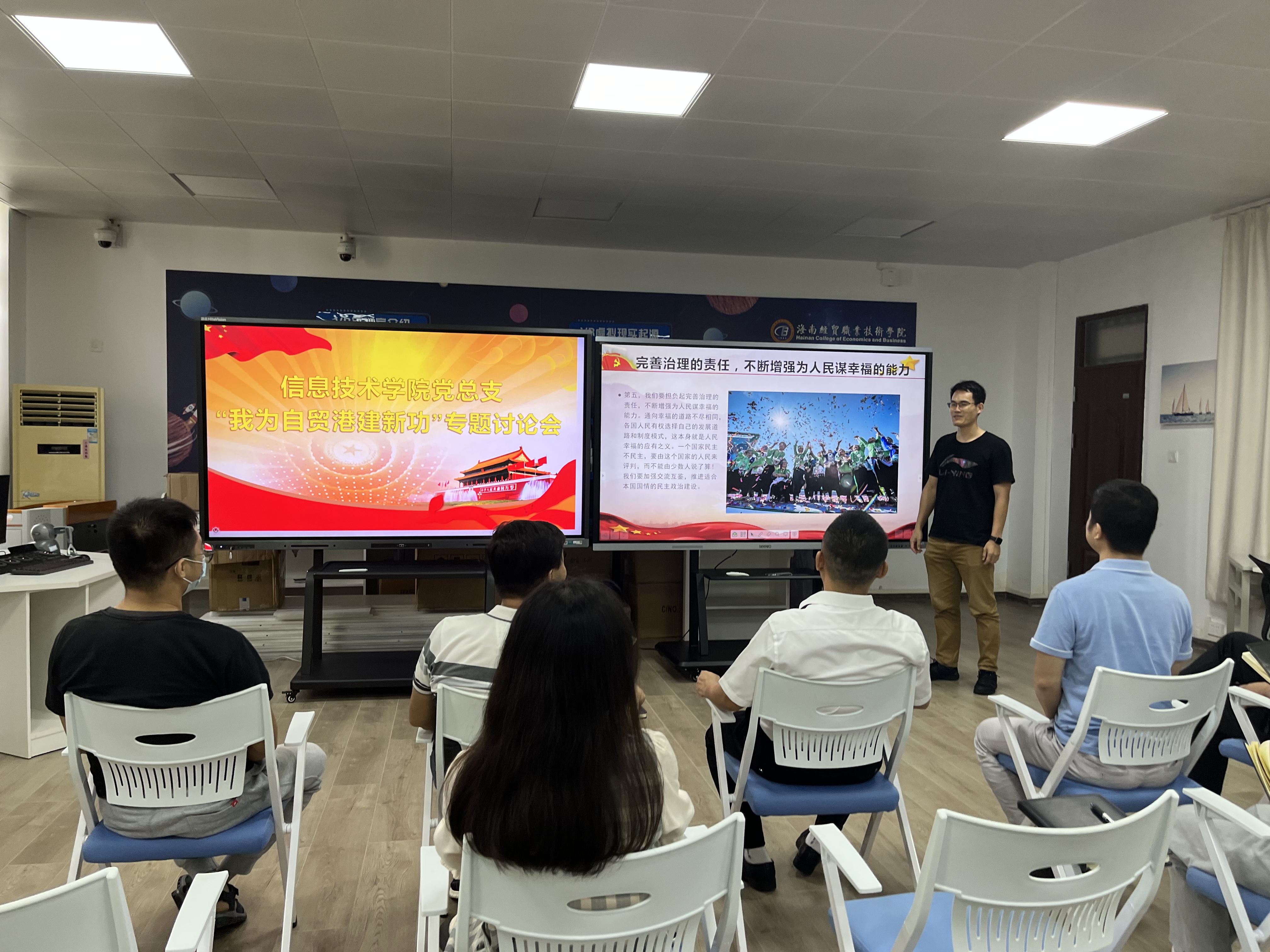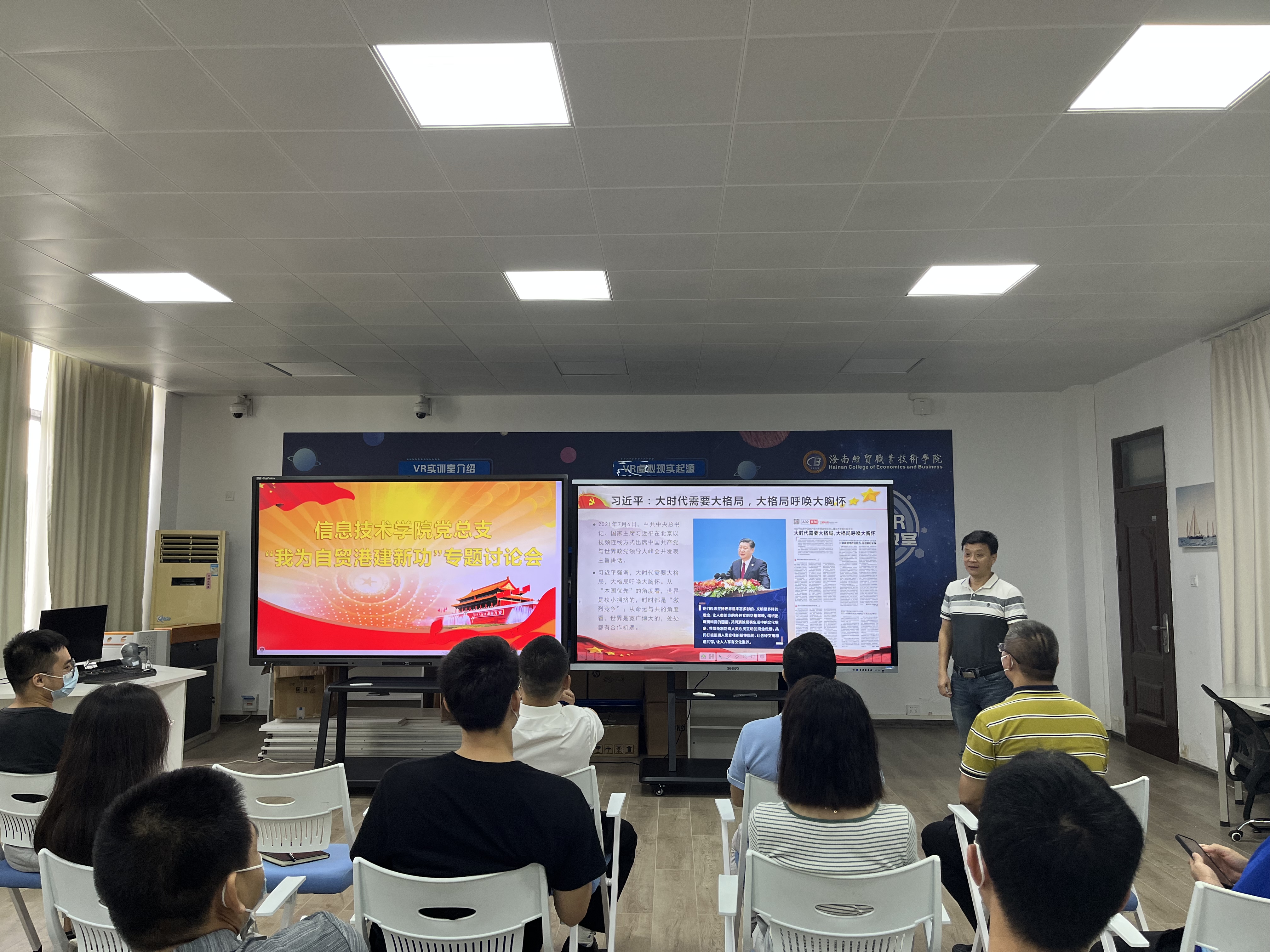5月16日,信息技术公司党总支在4-401召开“我为自贸港建新功”讨论会,会议由党总支书记符胜主持,sunbet全体教工党员参加了会议。
