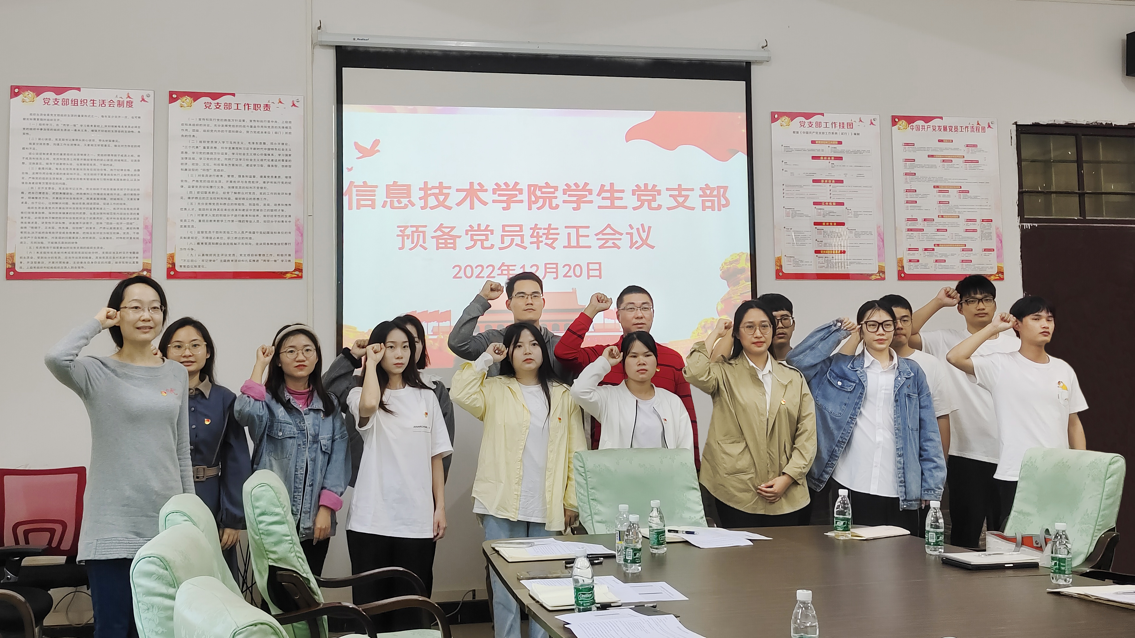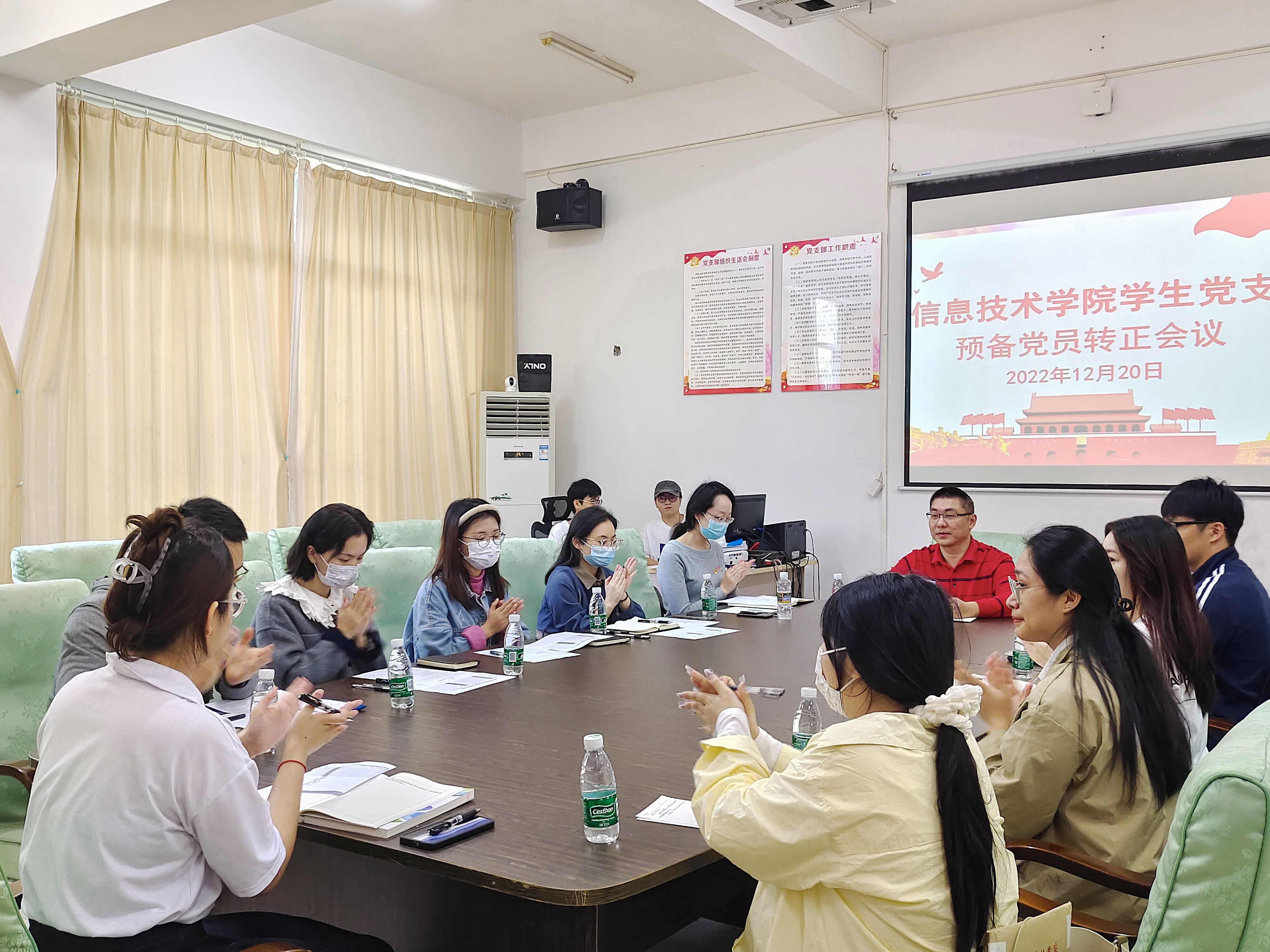 (青年媒体中心 黄正宁讯)2022年12月20日,sunbet员工党支部在4-213室召开预备党员转正大会。信息技术公司党总支副书记黄守官,员工党支部宣传兼纪检委员唐图、组织兼青年委员蔡守正同志、辅导员王智娴及吴淑亲等同志出席转正大会。本次会议由员工党支部书记代晓明主持。