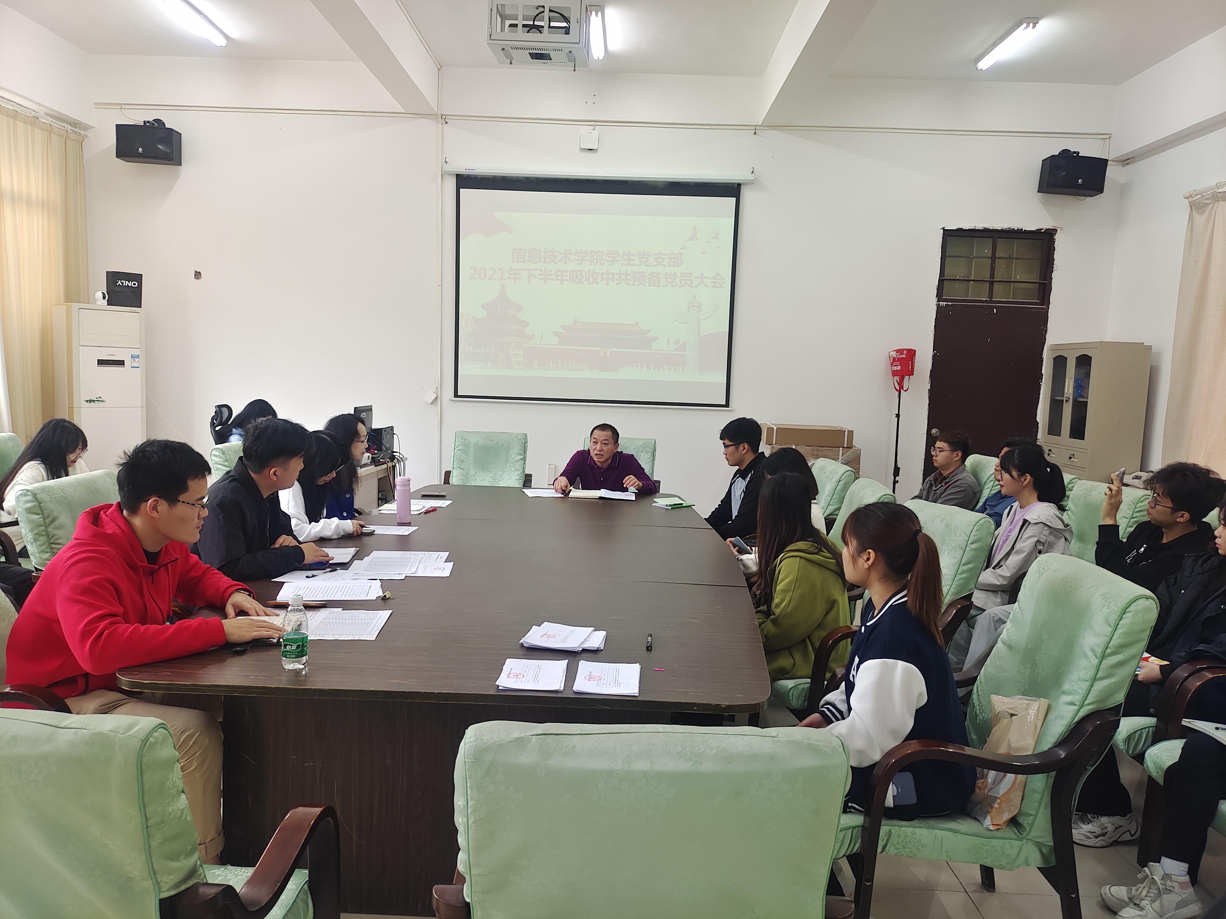 2021年12月20日上午9时,sunbet员工党支部在4-213开展“2021年下半年吸收中共预备党员大会”。参加本次会议的有:信息技术公司党总支书记孙金、员工党支部书记代晓明、员工党支部组织兼青年委员梁其钰老师、宣传兼纪检委员唐图老师、辅导员郭蓉佳老师等教师党员。