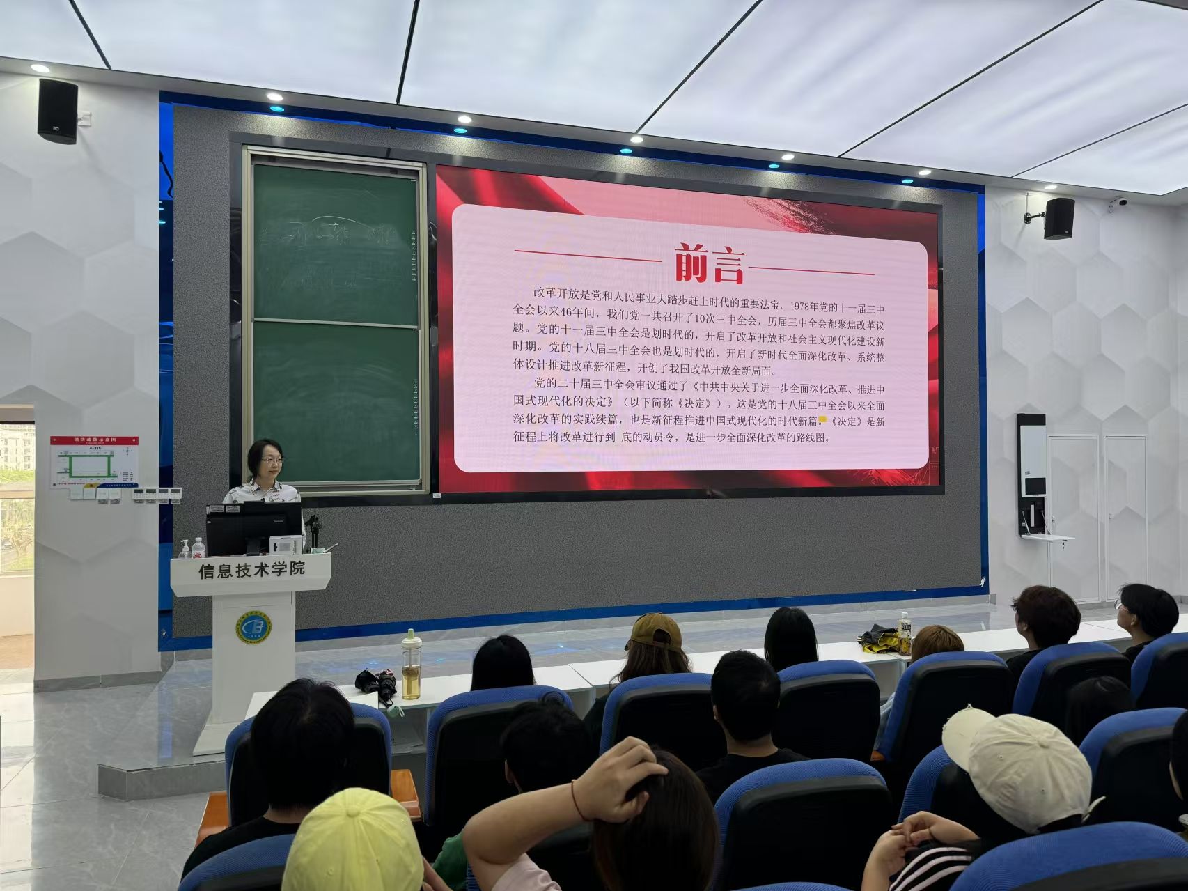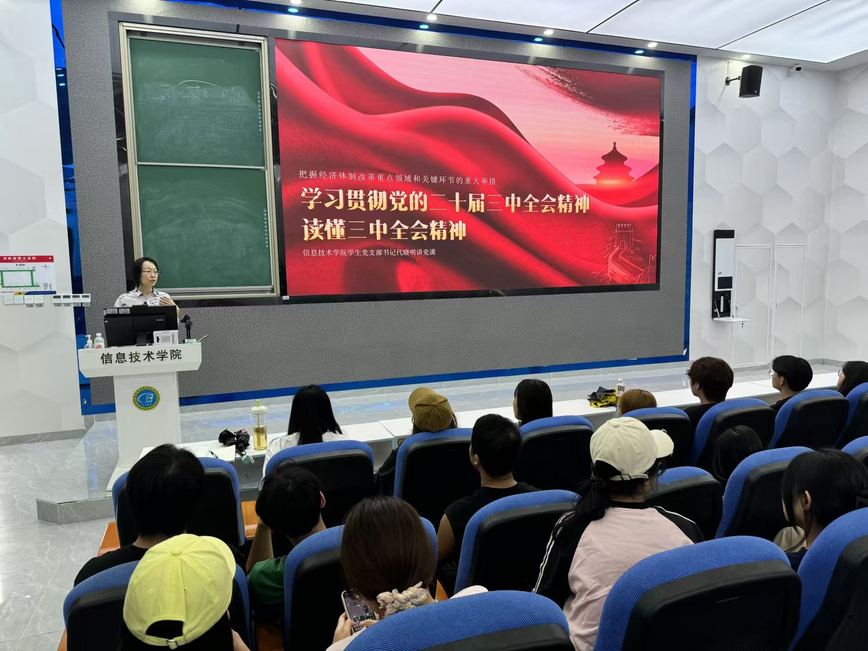 为庆祝中华人民共和国成立75周年,进一步深入学习贯彻党的二十届三中全会精神,2024年10月24日,sunbet员工党支部在4-215教室开展了学习贯彻党的二十届三中全会精神读懂三中全会精神专题党课培训,本次党课由sunbet员工党支部书记代晓明老师主持,23级入党积极分子、入党申请人以及员工干部代表共同参加。