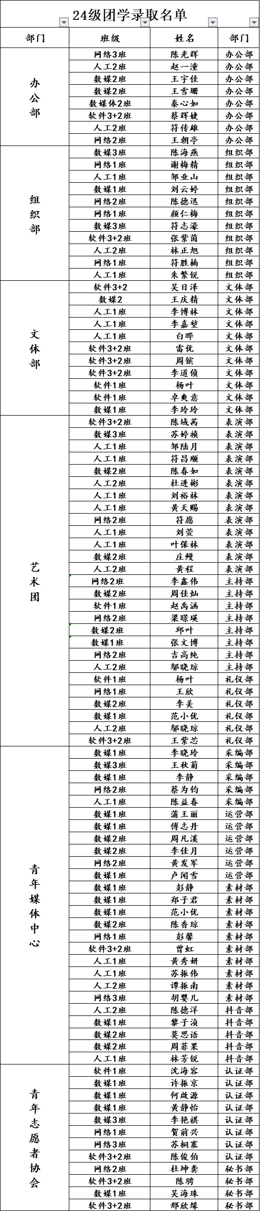青春是奋斗的年华,是追梦的季节。我们热烈欢迎新成员的加入,期待他们能够以满腔热血与不懈努力,为团学的发展贡献自己的力量。同时,未入选的伙伴们不要气馁,因为大学的舞台宽广无垠,机遇无限,只要你们保持热情,不断努力,未来一定有更多的机会等着你们。