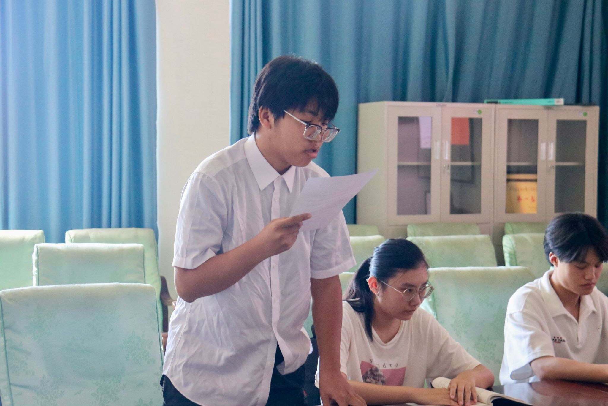 在学习环节中,同学们认真研读资料。梁其乐、孙小琼分享对科技创新的见解,聚焦芯片、人工智能等前沿科技领域,提出将其与专业知识融合,深刻诠释“自主创新是开放环境下的创新”,尽显当代青年响应两会号召、投身科技创新的使命与担当。