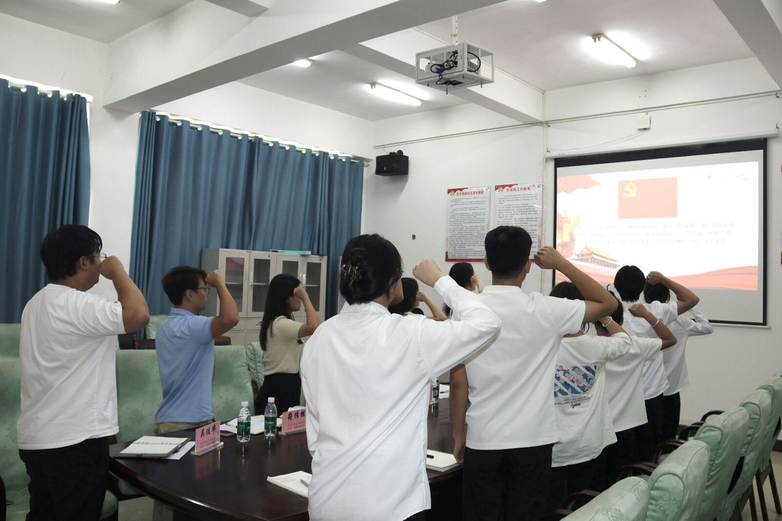 议程第七项:代晓明老师表示祝贺并殷切希望他们能够牢记入党誓词,不忘初心,时刻保持党员的先进性和纯洁性,不断提高自身的政治素质和业务能力,努力成为一名合格的共产党员。