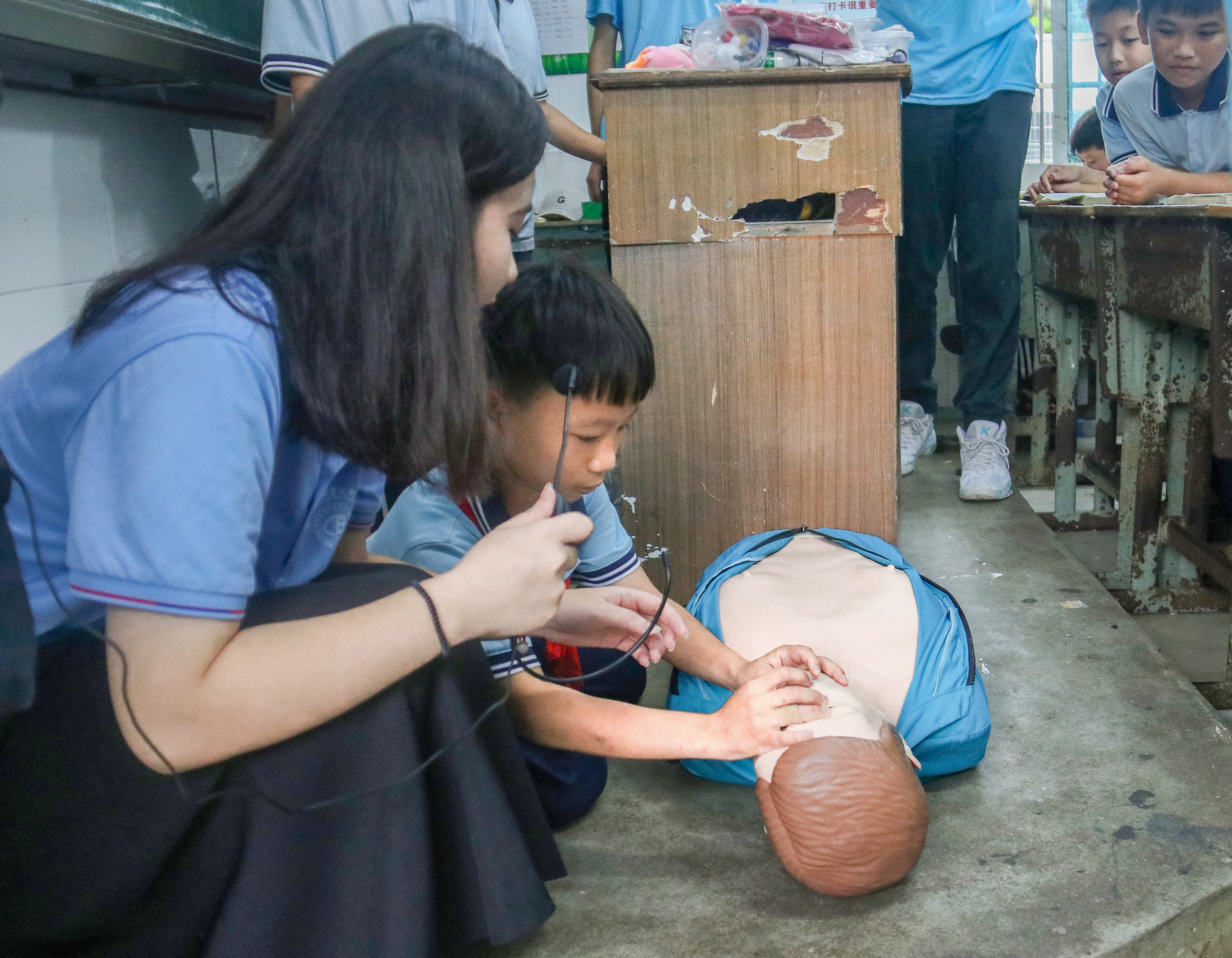 本次活动主要围绕“学讲普通话”和“暑期安全教育”两方面展开。支教服务队通过讲解普通话的相关知识,分享小故事及普通话绕口令的方式,引导员工充分全面认识普通话。紧接着,服务队从“拒绝校园霸凌”、“毒品安全”、“食品安全”、“防溺水安全”、“用火用电安全”五个方面开展未成年人保护宣讲,通过互动问答、课堂讨论、趣味安全手势操等形式,引导员工深入学习安全知识。服务队在现场还演示了心肺复苏术、海姆立克急救法,并邀请小朋友们上台体验操作流程,切实提高员工的自我保护能力和应急自救互助技能。最后,支教服务队和小朋友们通过“大西瓜小西瓜”“做相反”“大风吹”三个小游戏以及才艺表演进行素质拓展活动,活动过程中,小朋友的脸上都洋溢着灿烂的笑脸,伴随着欢声笑语,本次的支教活动也接近了尾声。