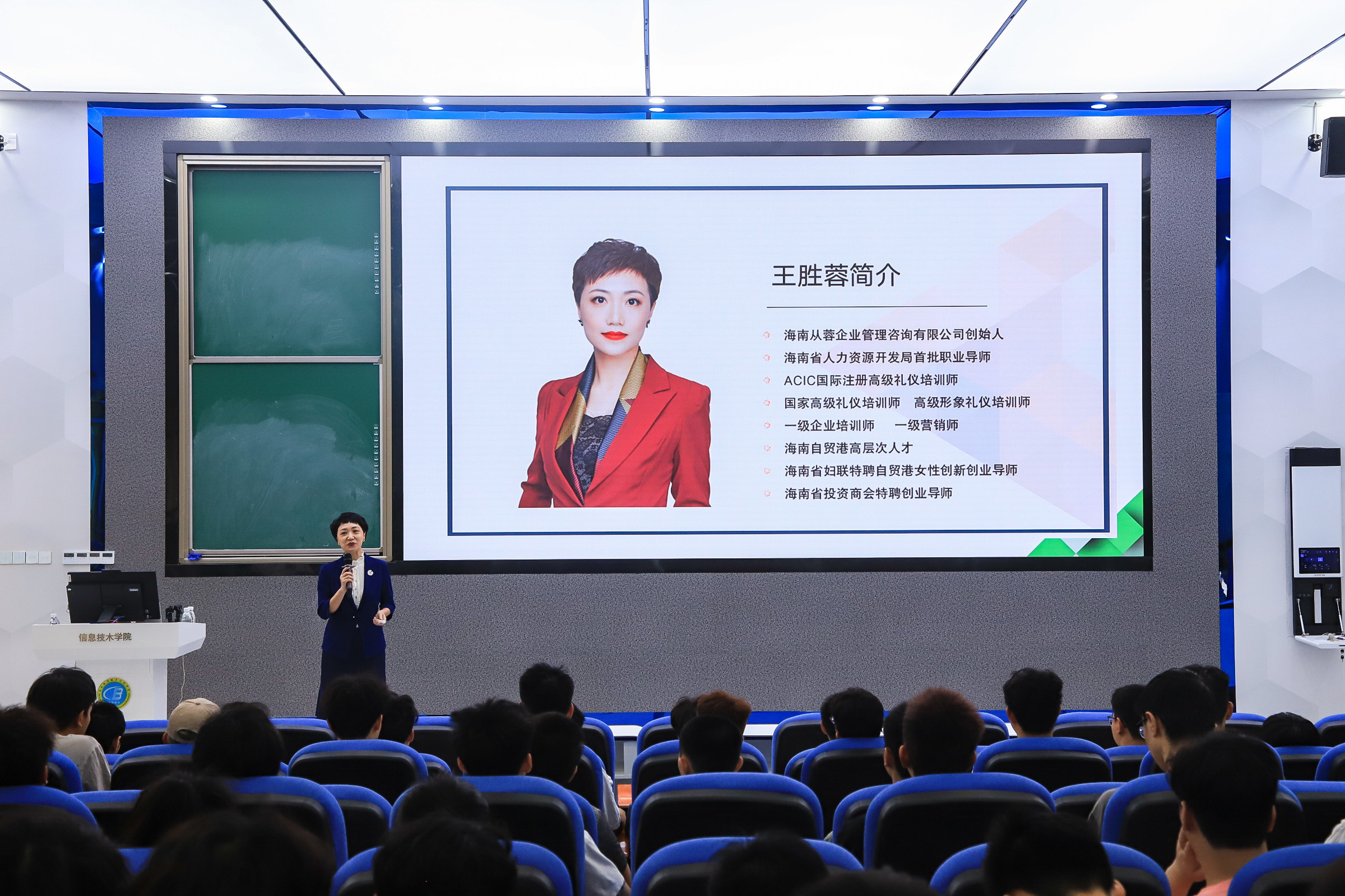 为进一步加强老员工文明素养,培养员工的形象管理能力,帮助大家从容自信地走向工作岗位。4月13日上午,sunbet在4-215举办“老员工形象管理讲座”。本次讲座由海南从蓉企业管理咨询有限公司创始人、海南省人力资源开发局首批职业导师、ACIC国际注册高级礼仪培训师——王胜蓉老师主讲,辅导员吴淑亲老师主持,共计200名参加讲座。