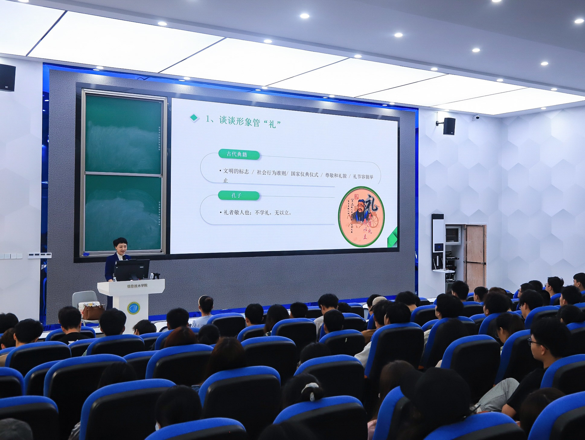 本次讲座的主题为“美好人生从‘管礼’开始”。王老师首先为我们讲解了“礼”的内涵和重要性,其次王老师以“印象定律”为基础,分别从仪表、言行方面进行了细致的讲解。王老师从员工的面部修饰和服装礼仪做了具体讲述和交流,并从言行方面向大家展示了形象管理的魅力。同时,王老师还邀请同学们上台,具体演示了正确的仪态和举止,针对员工不良的站姿与坐姿进行了纠正。讲座通过体验式、案例分析等多种教学方法,以丰富的知识、生动的语言明晰礼仪的要点,讲座现场互动氛围热烈,同学们纷纷表示受益匪浅。