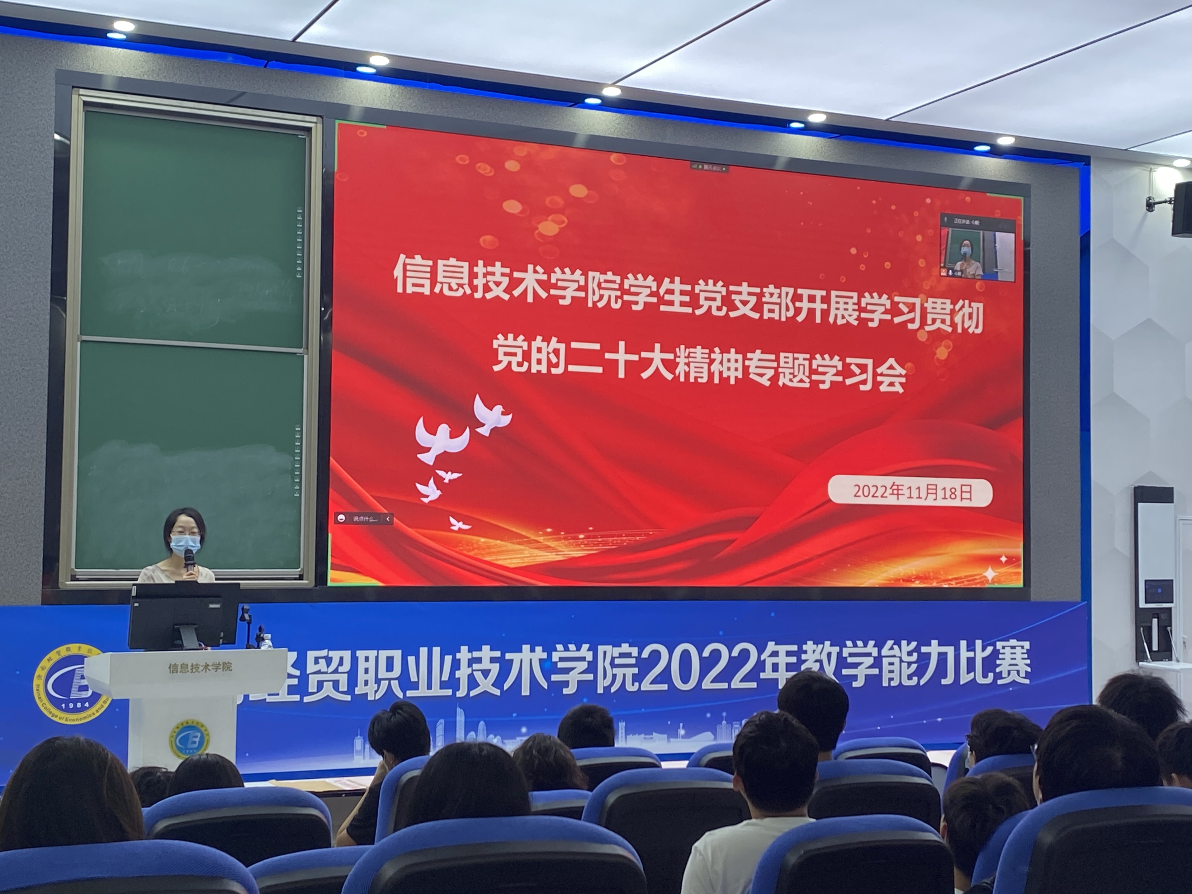 11月18日上午,sunbet员工党支部在4-215多功能厅组织开展学习贯彻党的二十大精神专题学习会,党支部书记代晓明向公司入党申请人宣讲党的二十大精神。