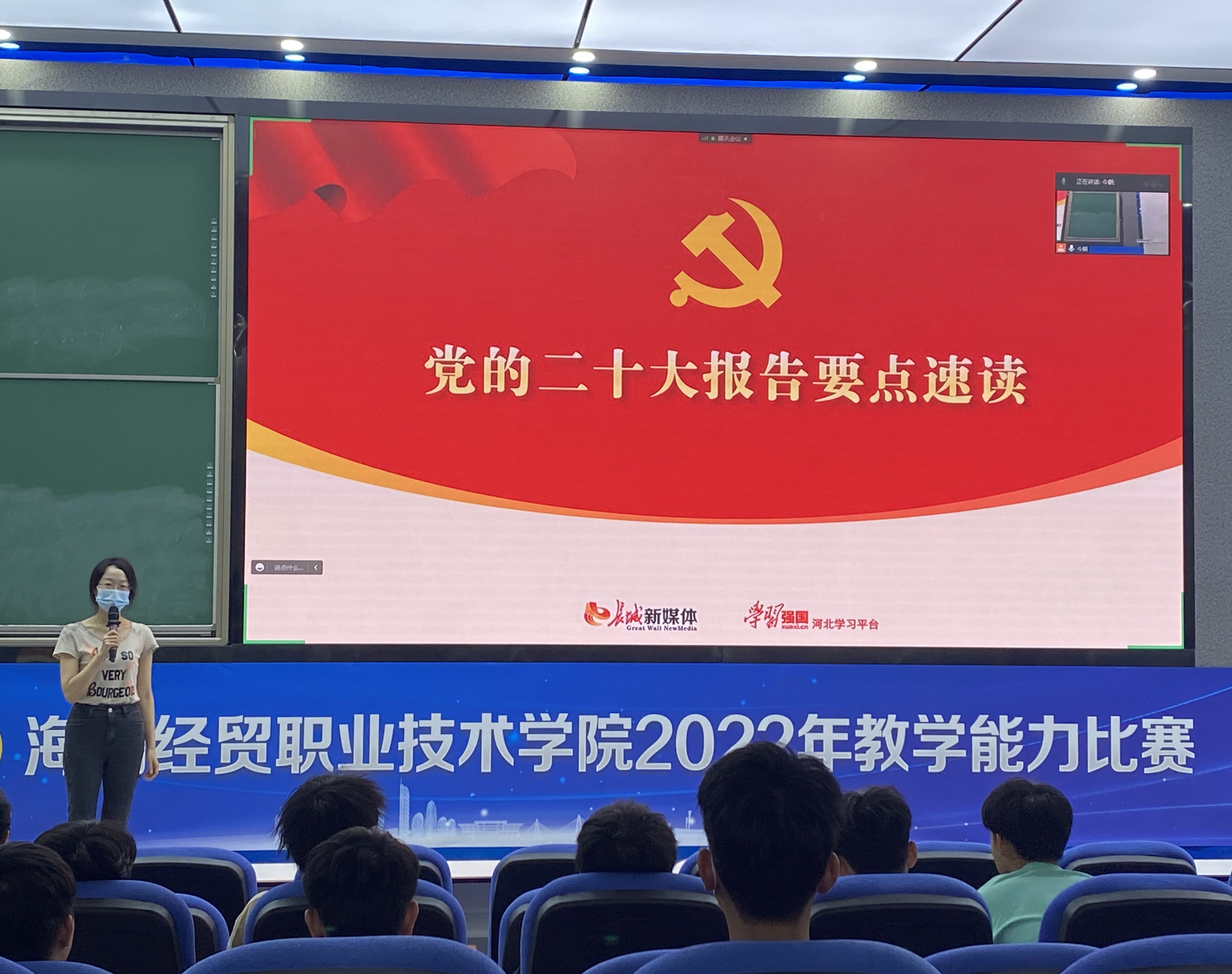 代晓明老师围绕准确把握党的二十大基本情况、准确把握党的二十大精神、准确把握十九届中央纪委工作报告内容等方面,向大家分享自己学习党的二十大精神的认识体会。代老师的分享主题鲜明、内涵丰富、深入浅出,加深了在场同学对党的二十大精神的理解。