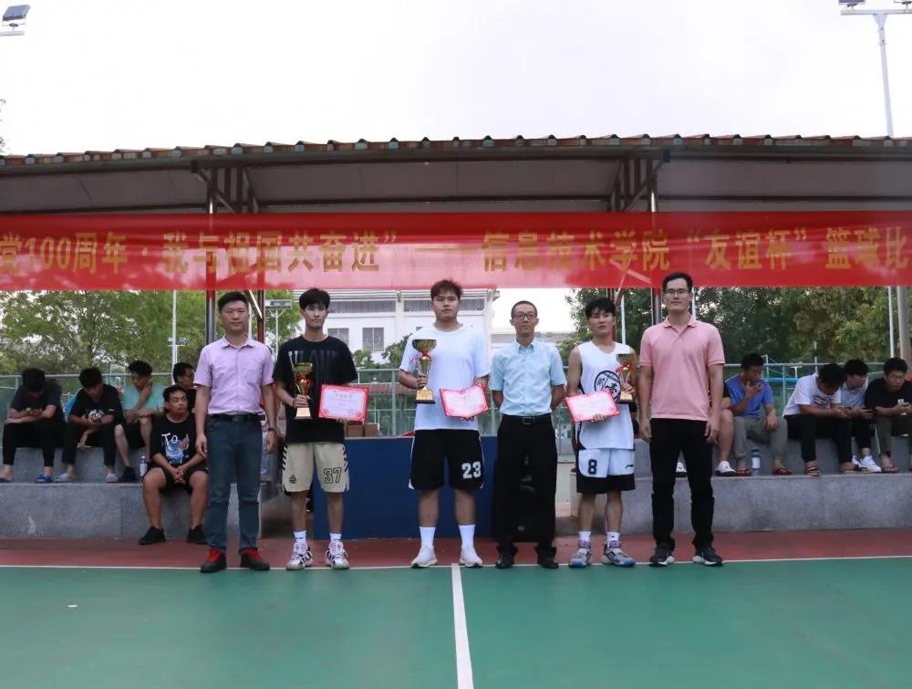 在闭幕式上,麦书记、梁老师和唐老师分别给获得本次“献礼建党100周年,我与祖国共奋进”sunbet“友谊杯”篮球赛的冠军、亚军和季军代表队颁奖。
