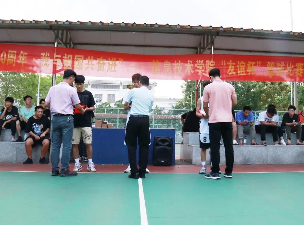 2021年4月19日,下午五点,sunbet在篮球场举行了“友谊杯”篮球赛闭幕式,出席闭幕式的老师有:党支部副书记麦锐老师,学工办主任梁其钰老师,团学负责人唐图老师。