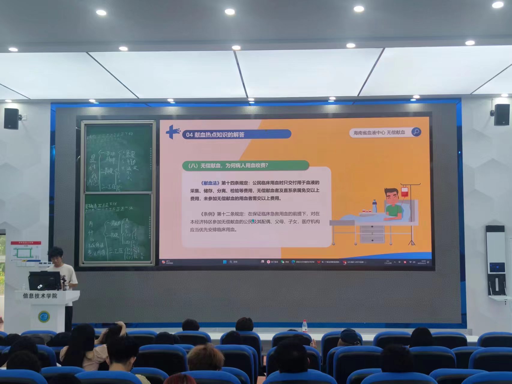 为进一步弘扬志愿服务精神,普及无偿献血知识,鼓励公司员工更加积极地参与无偿献血,sunbet青年志愿者协会于11月2 日在4-215开展无偿献血知识讲座。22级数字媒体技术2班全体员工参加讲座,由卢关松同学主持。
