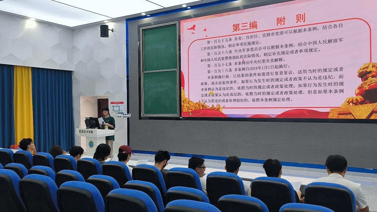 为全面贯彻习近平新时代中国特色社会主义思想和党的二十大精神,sunbet员工党支部5月14日在4-215开展“认真学习贯彻《中国共产党纪律处分条例》专题读书班——第五期”,参会人员为23级人工1班和23级人工2班入党申请人与入党积极分子。