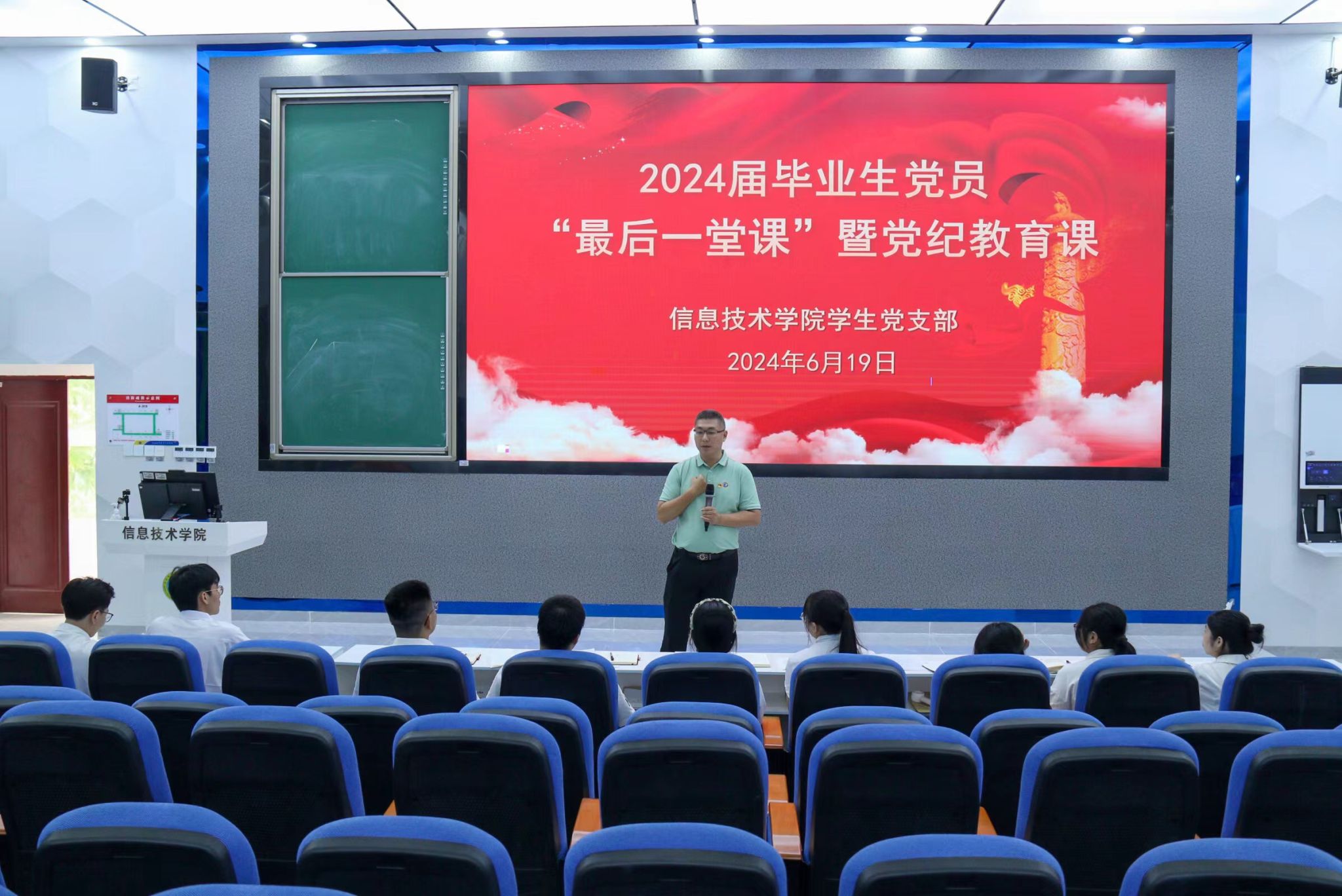 sunbet员工党支部于6月19日下午在4-215教室开展2024届毕业生党员“最后一堂课”暨党纪学习教育课,为即将告别校园,迈向社会的正式党员们上了一堂生动的党纪学习教育课。本次活动旨在加强毕业生党员的党性教育,提升他们的纪律意识,为他们即将开始的新征程打下坚实的思想基础。