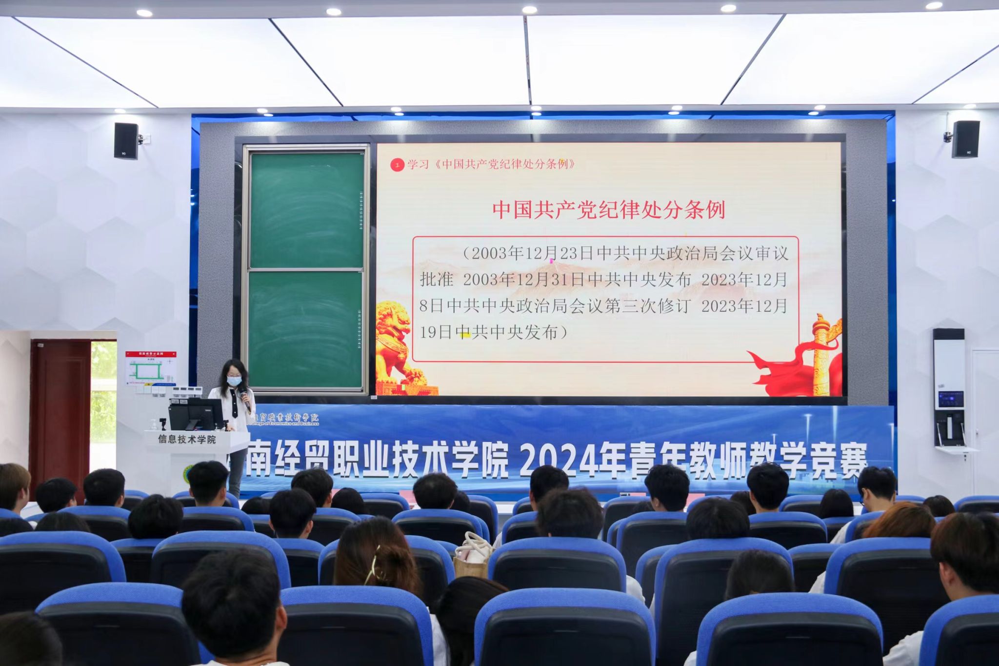 培训伊始,代晓明老师详细阐述了本次党课的核心内容和重要性。她强调,要不断加强党的纪律建设、推动全面从严治党向纵深发展,纪律是维系党组织稳定和执政合法性的重要保障。《条例》是党管党治党的重要基础性党内法规。紧接着代老师为同学们提供了具体的学习方法。她指出,学习《条例》不仅要了解其具体内容,更要注重融会贯通,将其与其她党内法规和国家法律相结合;同时,要联系实际,结合个人实际情况,创新学习方式,充分利用电子和纸质材料,深入理解并践行条例精神。