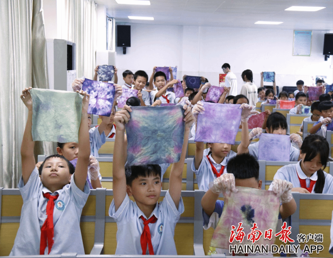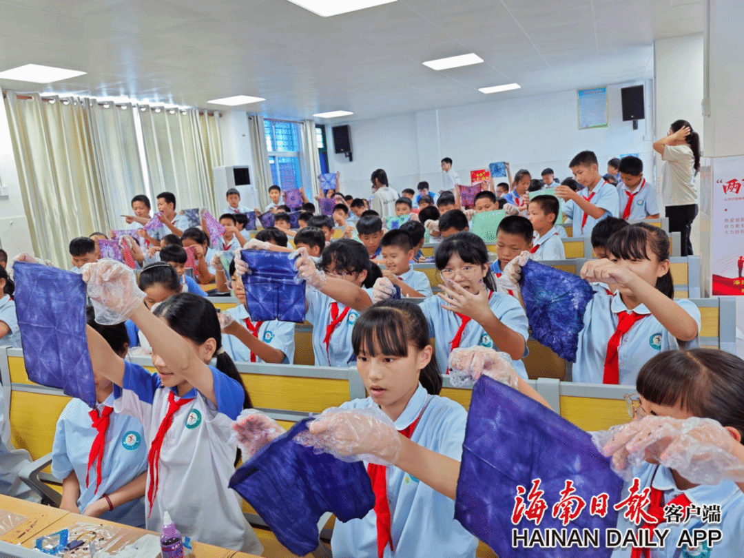 文化瑰宝探寻与传播实践队则引领孩子们踏入了扎染艺术的奇妙世界。在实践队成员的悉心指导下,孩子们亲手操作,将一块块普通的布料变成了一件件色彩斑斓、充满创意的扎染作品。这一过程不仅锻炼了孩子们的动手能力和创造力,更让他们领略到了中国传统文化的独特魅力。