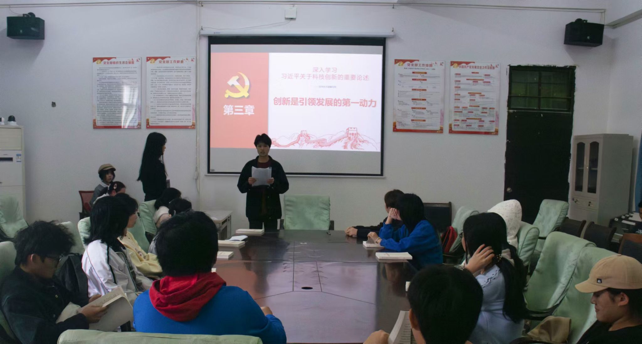 活动伊始,王紫芯组织同学们自行阅读关于科技创新的相关重要论述,同学们认真阅读并深入领会科技创新在新时代背景下的重要意义。随后,王紫芯进行了发言,她着重强调了创新发展在新时代的重要性,指出其是解决发展动力问题的关键所在。