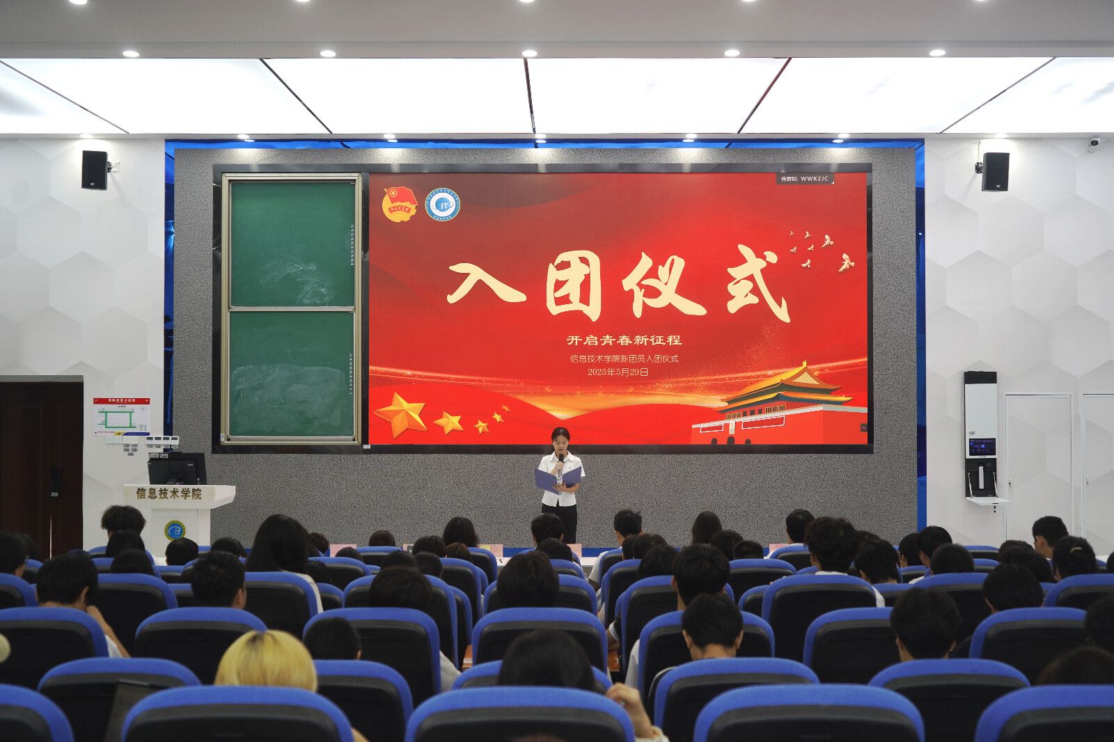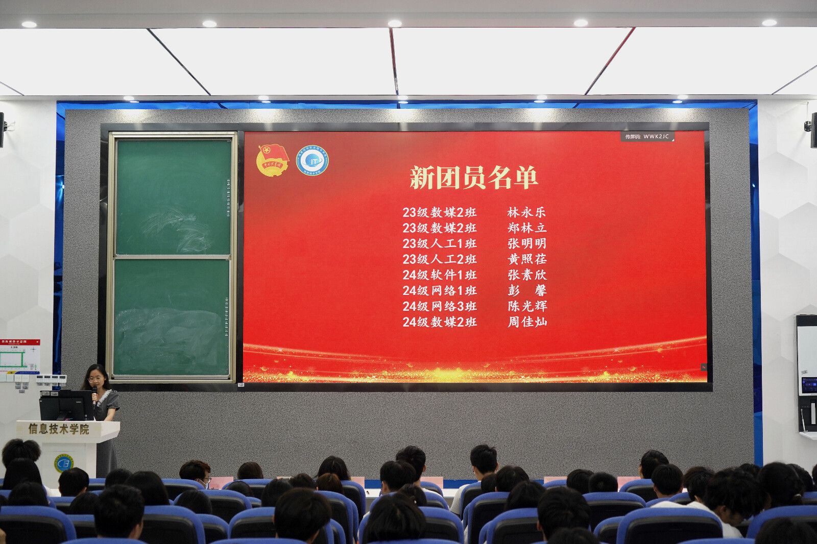 仪式上,全体人员奏唱国歌,激昂的旋律激发着大家的爱国热情。随后,由蔡守正老师宣读新团员名单,并由老团员为新团员佩戴团徽。接着,由郭云飞同学领誓,带领全体团员庄严宣誓,字字铿锵有力,表达着对共青团的忠诚和为共产主义事业奋斗的决心。