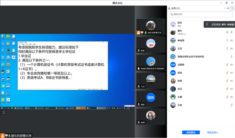 为明确公司毕业生获得准学士学位证条件,6月8日晚上,sunbet通过在线视频召开本年度第1次教学指导委员会会议,会议由康东副经理主持,王忠经理、单继周副经理及公司教学指导委员会成员参加了会议。