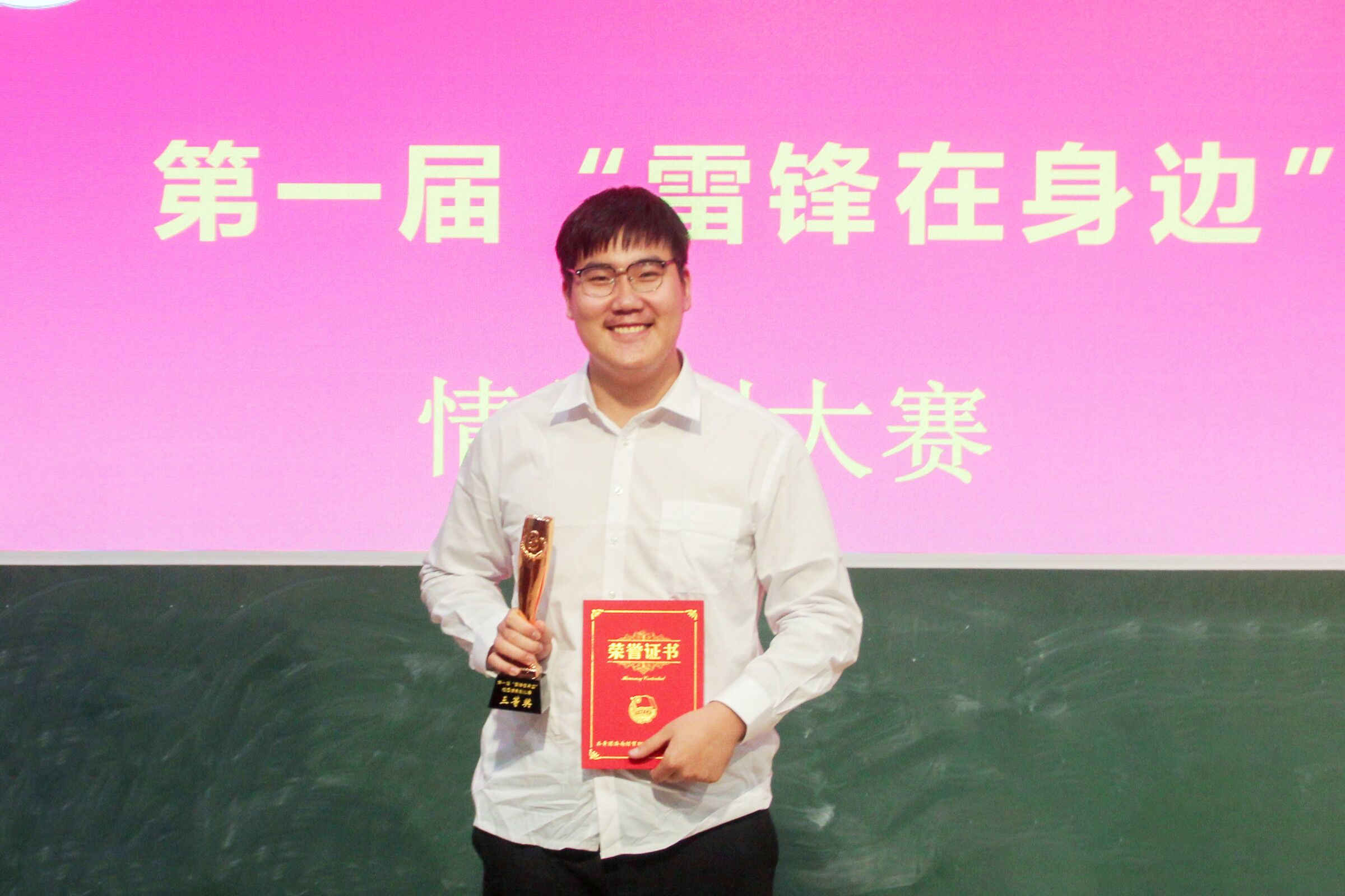在本次大赛中,公司学子自编、自导、自演的情景剧荣获三等奖。该情景剧以“雷锋伴我行,将爱续传承”为主题,以助人为乐的班长为主线。剧中,同学们积极参加义务劳动,帮助校园环卫打扫校园。通过情景表演,再现了无私奉献的雷锋精神,充分展示了公司学子胸怀大爱、坚定信念、锐意进取的精神风貌。