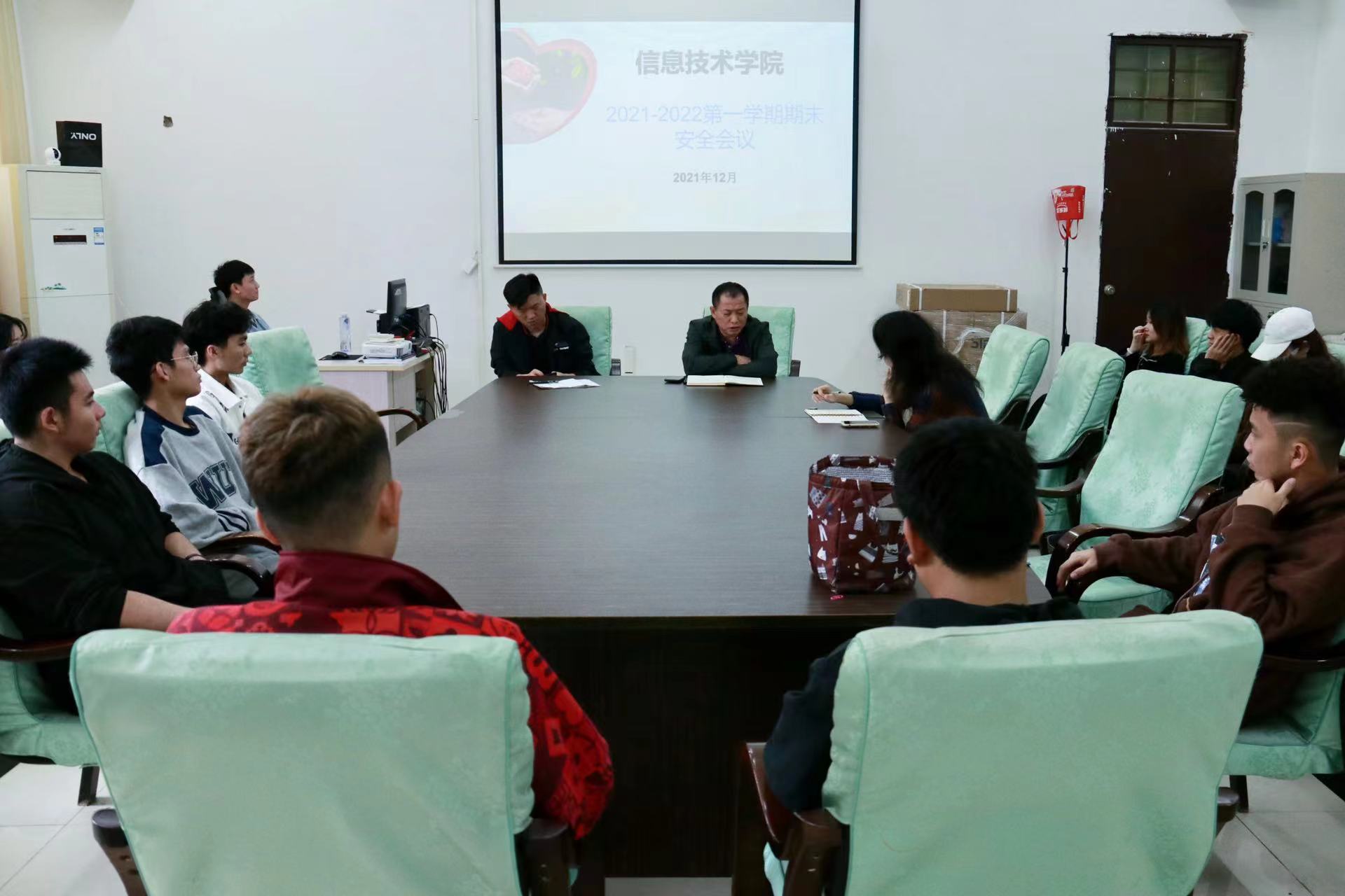 2021年12月30日(青年媒体中心  吴振慧讯),临近期末,寒假即将来临,为加强同学们假期安全意识,提醒同学们假期安全注意事项,公司于2021年12月30日召开期末安全会议。公司党总支书记孙金、学工办主任梁其钰、员工党支部书记代晓明以及20级、21级全体班长、团学干部参加了本次会议。