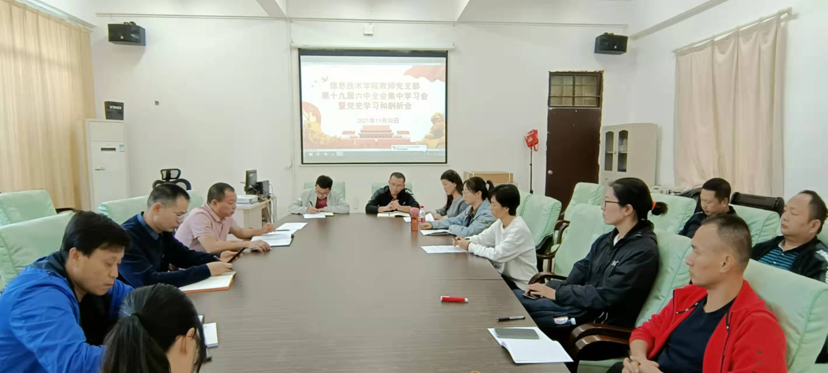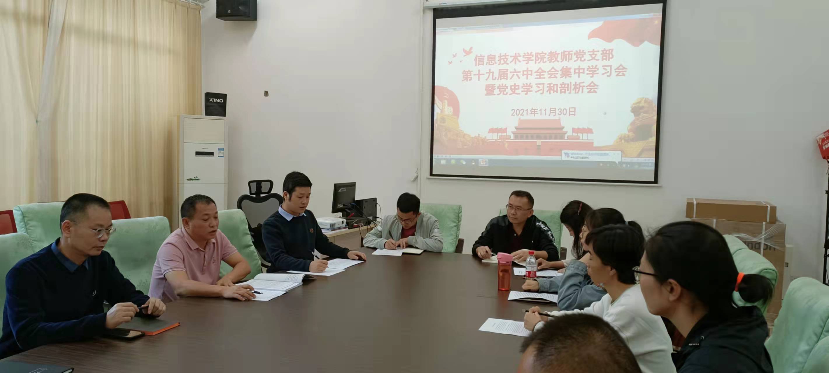 11月30日下午,公司教师党支部在4-213会议室召开党的十九届六中全会集中学习会暨党史学习和剖析会。会议由公司书记孙金主持,经理王忠、副经理单继周、副经理康东及支部其他教师党员参加了本次学习会。