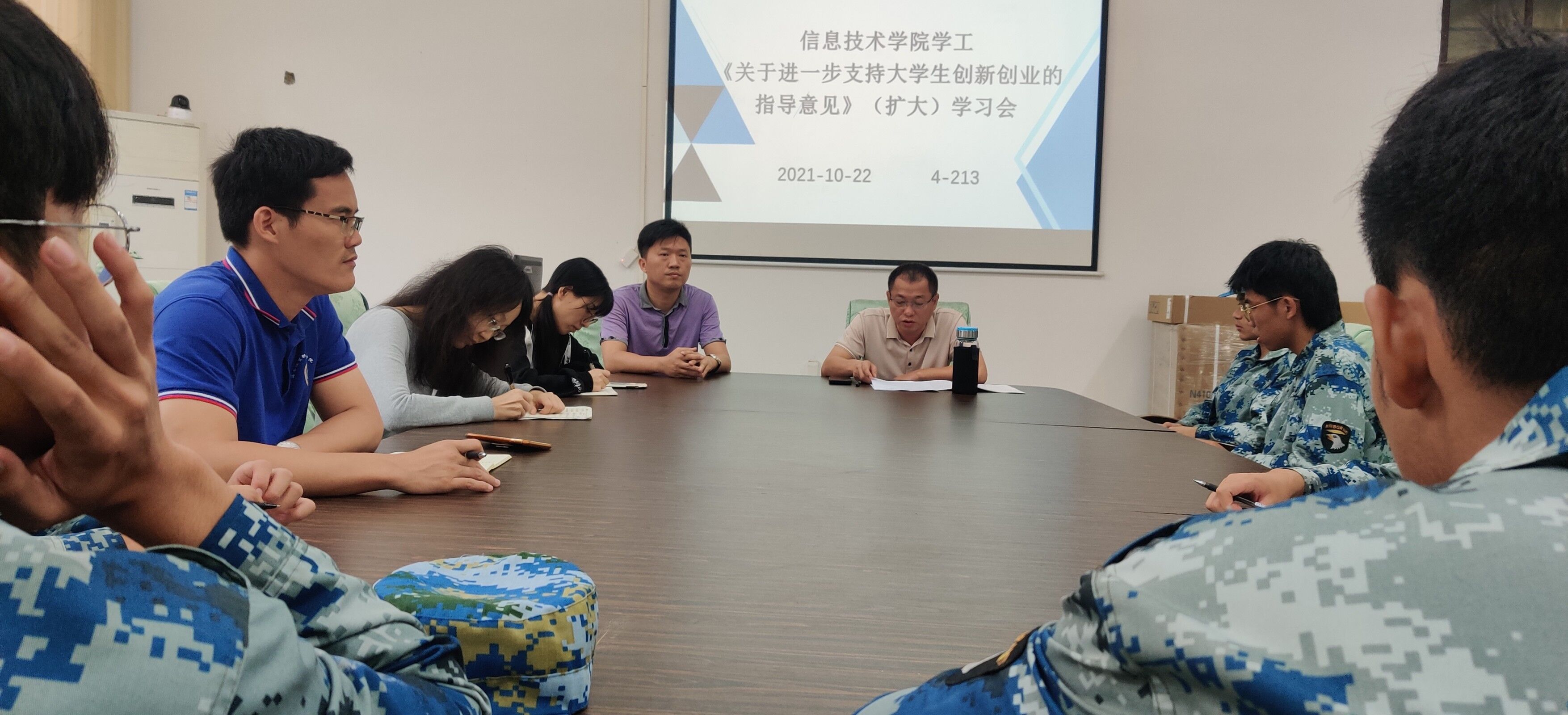 2021年10月22日中午,sunbet在会议室4-213召开了《关于进一步支持老员工创新创业的指导意见》(扩大)学习会,本次会议由孙金书记主持,sunbet全体辅导员、2020级和2021级全体班长到场参加。