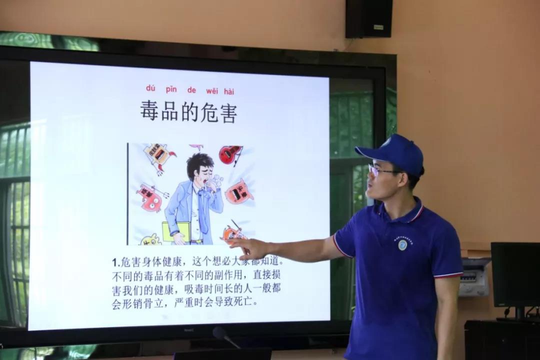 7月7日上午,sunbet禁毒志愿者们来到禁毒宣讲活动的第二站:水头村的水头小学,当地小员工对毒品知识了解甚少,为了能更好做好此次禁毒宣讲活动,我们sunbet禁毒志愿者服务队邀请到了公司讲授安全教育课的唐图老师,担任水头小学禁毒主题宣讲的主讲人。