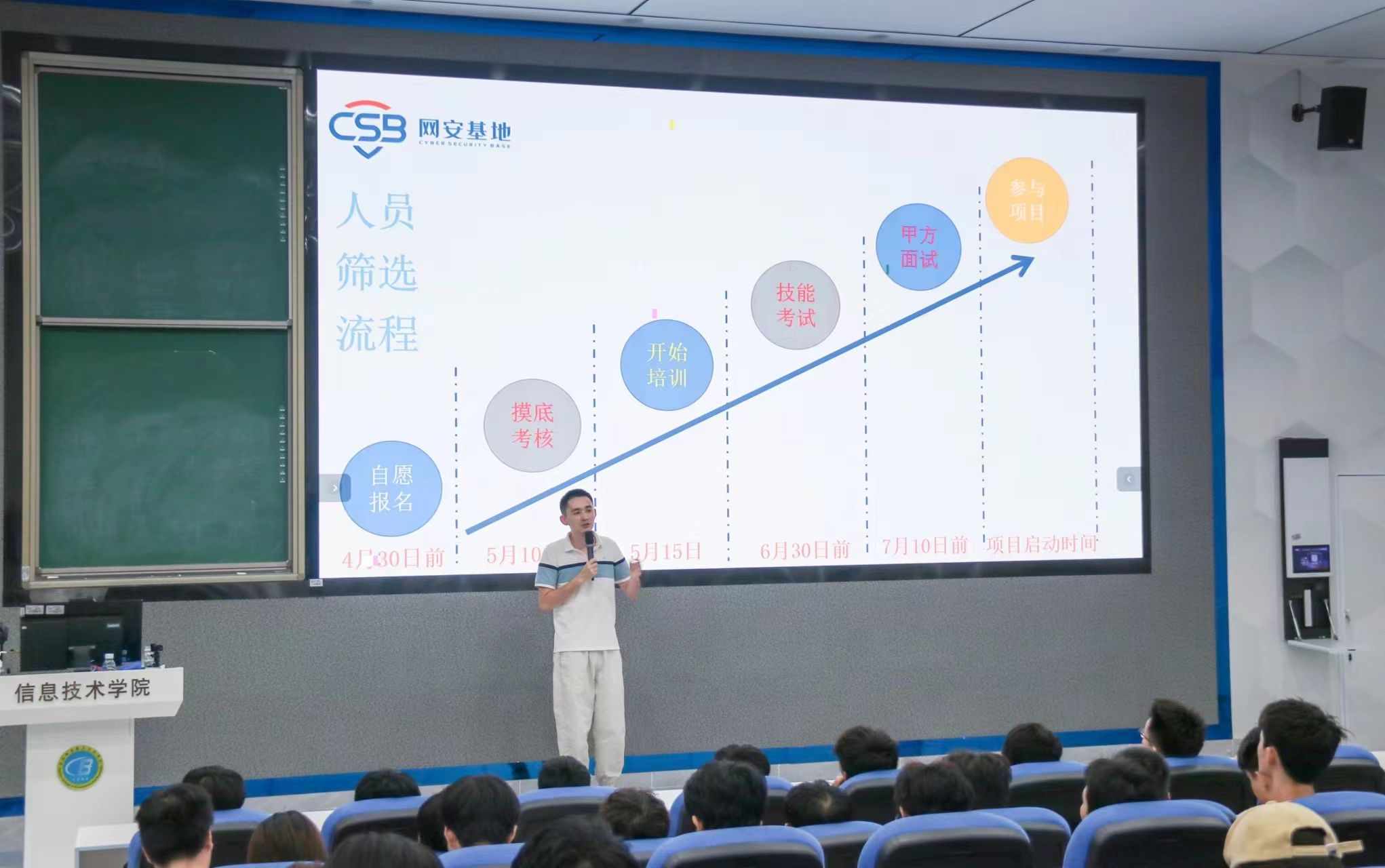 为进一步深化员工对网络安全领域的认知与理解,提升专业技能,sunbet于4月16日下午在4-215召开了2024年网络安全人才培养选拔宣讲会,由海南网安基地科技有限公司的许际峤主任担任主讲人。2023级全体员工参加。