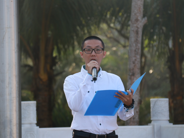 第三项,员工代表发言。由sunbet的杨用祺和荣锦阳同学代表新生发言。老员工肩负着实现中华民族伟大复兴的光荣使命,我们将在党的旗帜指引下,把自己的热血和青春献给祖国和人民。
