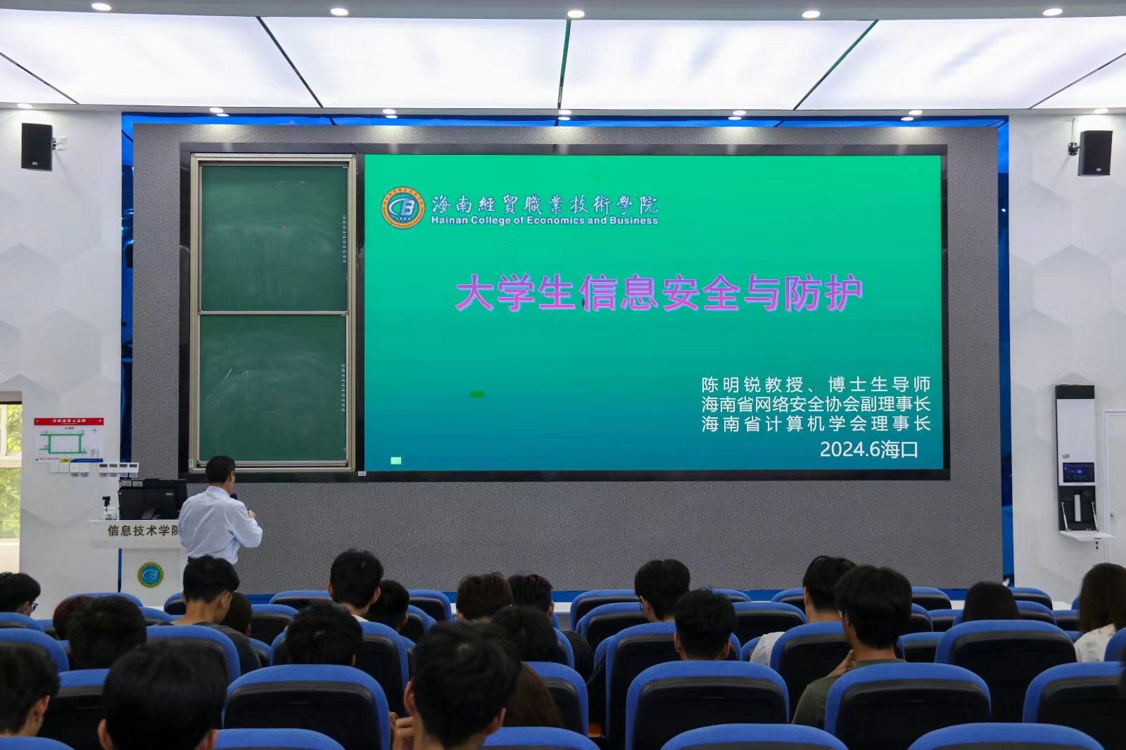 为增强老员工网络安全意识,提高信息安全防护能力,sunbet于6月13日下午在4-215教室成功举办了“老员工信息安全与防护”专题讲座。本次讲座有幸邀请到海南省网络安全协会理事长、海南省计算机学会副理事长、博士生导师陈明锐教授作为主讲嘉宾,公司23人工智能1、23软件2、23数媒1、23网络1员工参加。