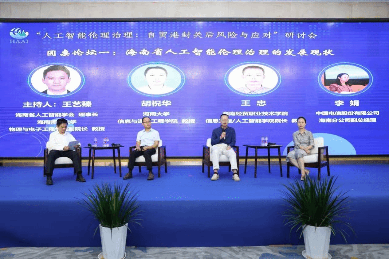 本次研讨会由海南省人工智能学会主办,海南大学机电工程公司、海南大学创新创业公司承办,海南省人工智能学会人工智能伦理与治理工作委员会(筹)、海口市生物机械与智能交互重点实验室、海南师范大学物理与电子工程公司协办。研讨会汇聚了来自学术界、产业界和政府部门的专家学者,共同分析和讨论人工智能伦理治理的最新动态、挑战与解决方案。会议通过主题报告、揭牌仪式和圆桌论坛等多种形式,为与会者提供一个全面了解和深入讨论的平台。