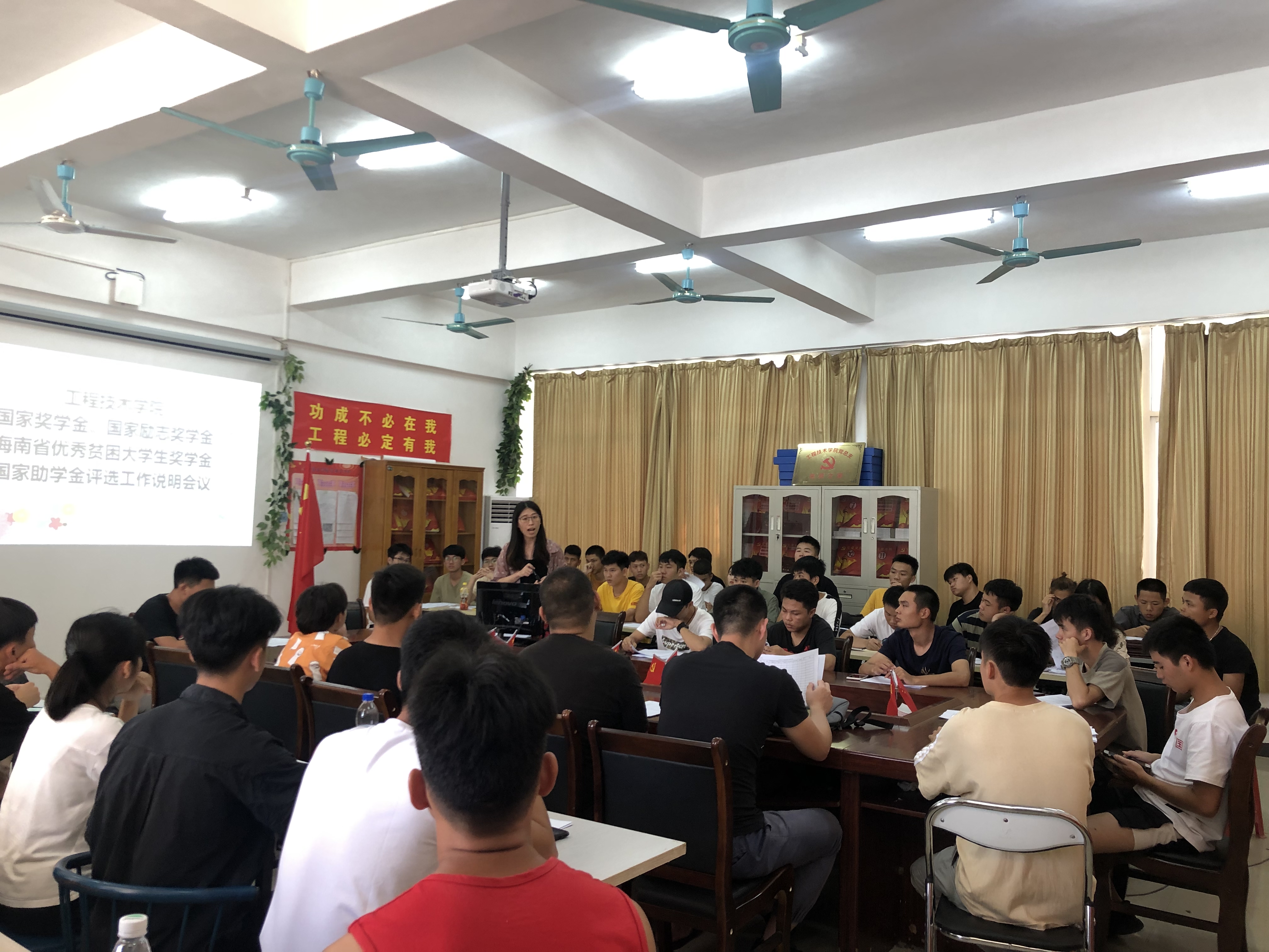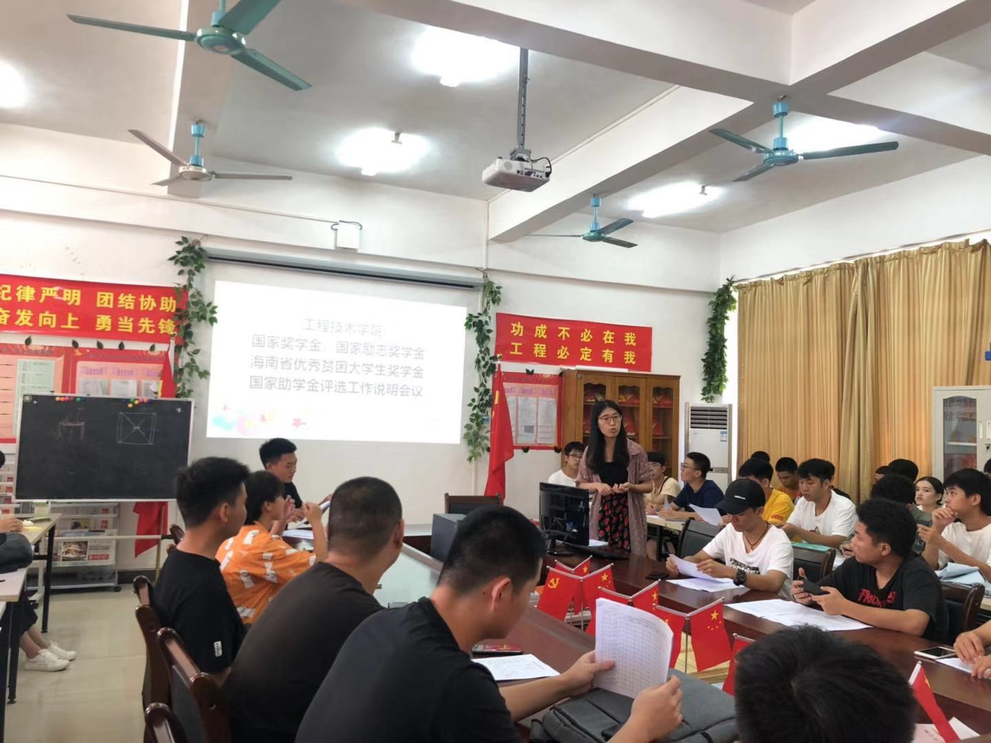 郭蓉佳老师主持会议并带领各班长学习sunbet官方网站员工工作处下发的关于“公司奖学金”评审工作、全日制残疾员工、特殊家庭经济困难员工减免学费和住宿费工作、国家奖学金评审工作、国家励志奖、国家助学金及海南省优秀贫困老员工奖学金评审工作的通知。随后向大家讲解申请各奖助学金的注意事项、所需资料、班级名额分配、资料提交时间。
