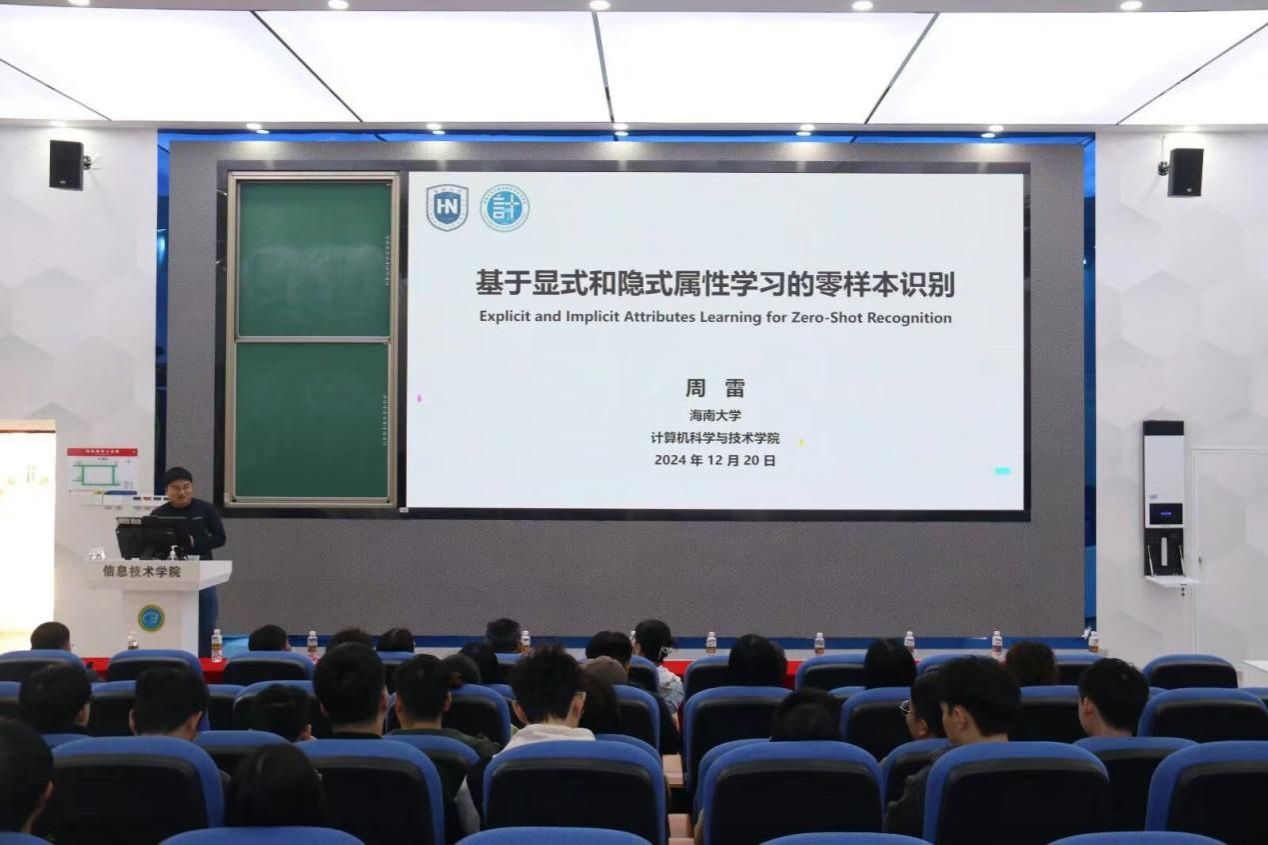 2024年12月20日,海南大学智图科研团队与公司人工智能技术应用协同创新中心团队在4-215教室进行学术交流并召开学术研讨会,sunbet经理王忠教授,人工智能技术应用协同创新中心团队成员及教师代表符龙生、杨博、庞寅等参会。会议伊始,团队负责人海南大学科学技术发展院副经理谢夏教授致开幕辞,对参会师生的到来表示热烈欢迎。随后,周雷副教授做了题为“显式和隐式属性学习的零样本识别”的学术汇报,深入剖析了零样本学习研究的难度与挑战,分享了他的研究心得与成果。