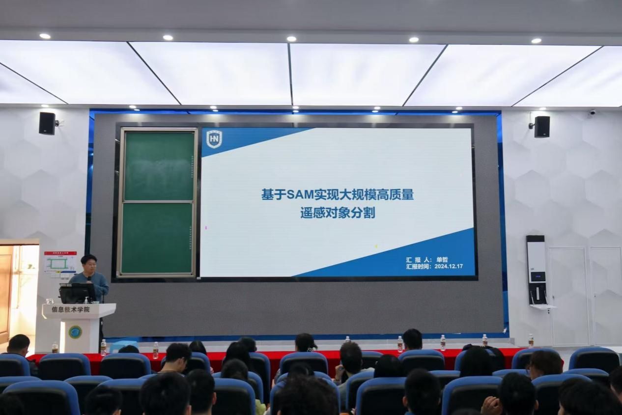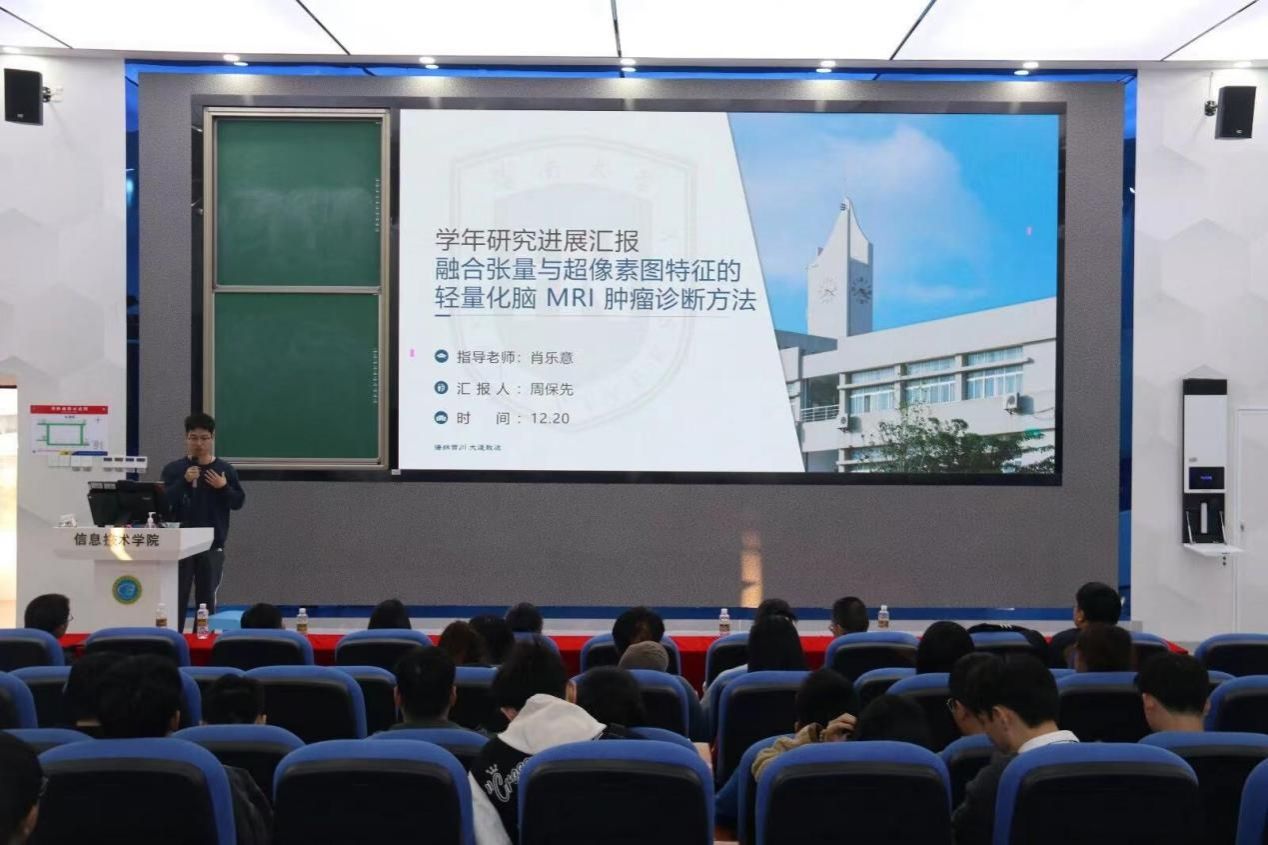 团队单哲博士以“基于SAM实现大规模高质量遥感对象分割”为题,详细介绍了遥感技术的定义、应用以及SAM在遥感对象分割中的挑战与解决方案。周保先博士以“融合张量与超像素图特征的轻量化脑MRI肿瘤诊断方法”为题,详细介绍了该方法的原理、应用及研究背景,展示了实验环境和数据集,让与会者对该领域的前沿动态有了更为直观的认识。
