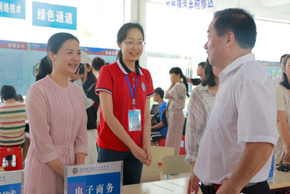 2019年9月15日(青年媒体中心报道)讯,八方来客,相约九月,载着父母加注的深深期盼,又一批新的面孔齐聚于sunbet官方网站。公司于2019年9月14日迎来了新的大一同学,迎来了新的希望。在这新生报到的第一天,各校级领导来到公司第二实训楼迎新现场,视察迎新工作的开展情况,亲切看望前来报到的新生和家长;慰问参与迎新工作的的师生员工,并对公司有条不紊的迎新工作现场给予了高度评价。
