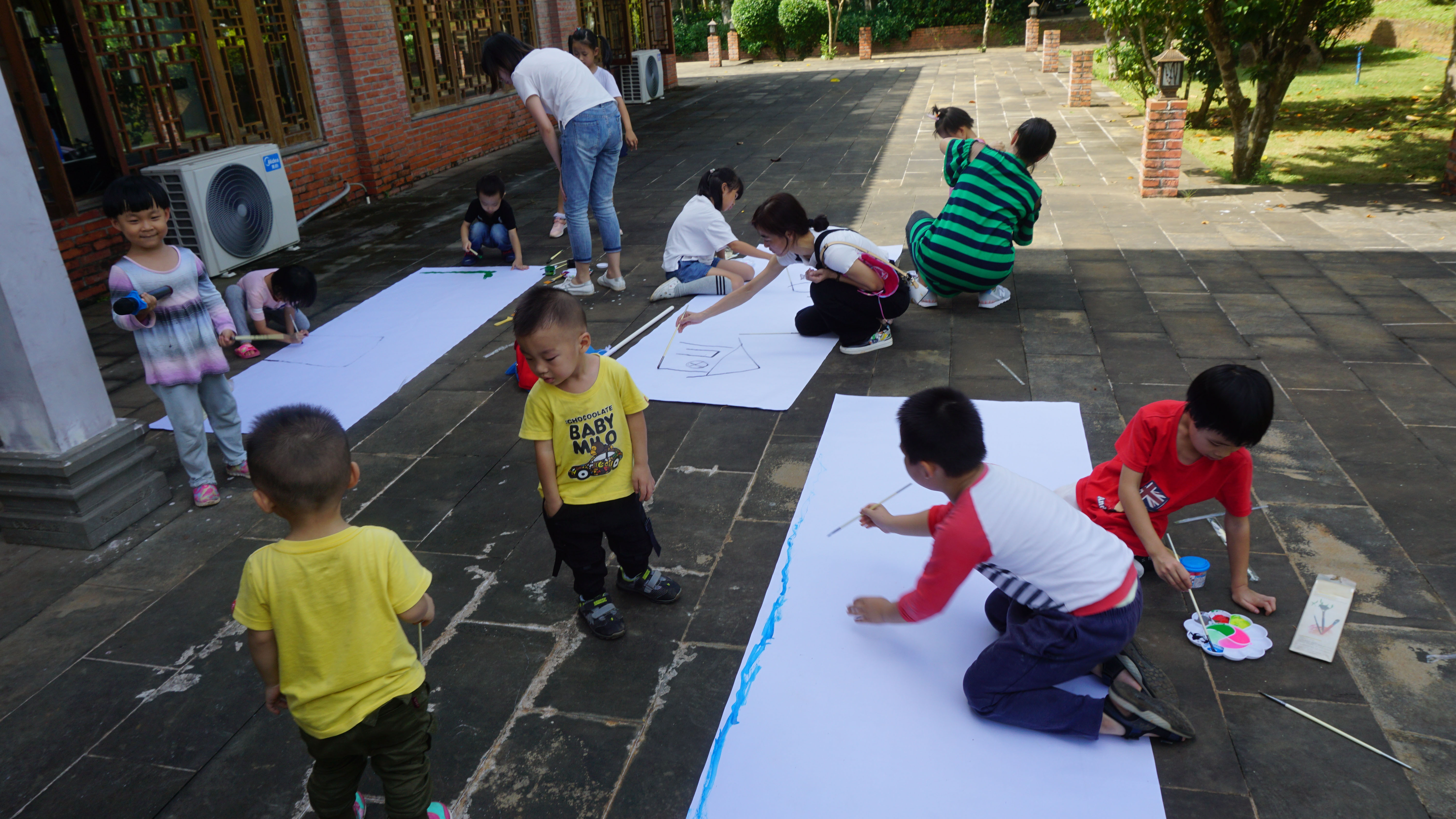 抵达活动地点后,大家自由参观农家乐菜园、果园并进行了采摘,随后所有参加的成员以家庭为单位被分成四个作战小分队,每个小分队自行讨论确定队长、队名、队徽、口号、队歌,并按要求摆出相应的队形,组建好团队后,每个小分队进行了团队展示,展示的队伍齐心协力喊出了口号、合唱了队歌,摆出了别具一格的队形。小组展示结束后,各小分队进行了亲子游戏的比拼,每个亲子游戏都是家长和小孩共同参与,激烈的两人三足接力和为你辅路两个项目将家长和小孩的情绪充分调动起来。随后的环节是考验家长和小孩的默契程度,家长和小孩全部蒙上眼罩,家长围坐一圈,小孩轮流抚摸家长们的手或脸进行辨别找到自己的父母,这一环节小朋友表现都很出色,很快便找到了自己的父母。