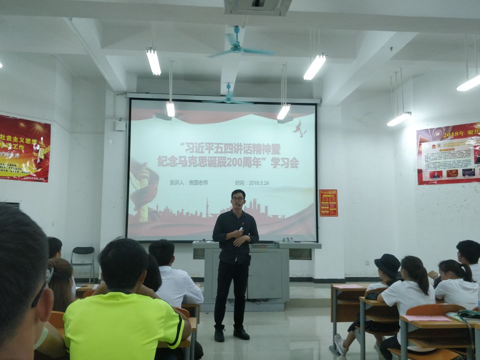 报道 ),5月24日11点45分公司在二栋教学楼408教室开展学习习近平总书记五四讲话精神暨纪念马克思诞辰200周年会议。本次主讲人:团总支书记唐图。参讲人16,17级团干,团学青干部,干事和16,17级入党积极分子,主持人刘念。