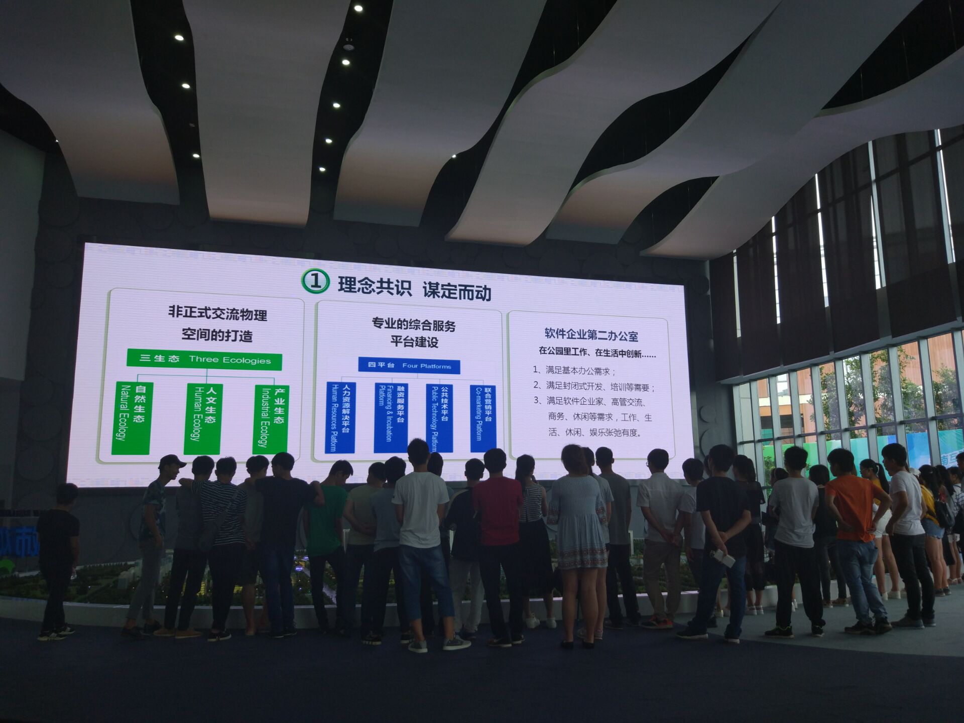 到达目的地后,园区的接待经理向老师同学们讲解了海南生态软件园的概况,入驻软件园的企业发展现状等,集中讲解之后,软件园区负责人带领老师和同学参观了入驻园区的企业,了解了办公环境和计算机行业岗位的工作内容和工作要求,最后我们抵达海南安艾艾迪信息科技有限公司(NIIT),听取了由该公司的培训总监丁老师给大家带来的关于计算机行业发展前景及软件设计及开发课程学习情况及就业前景的分享会。