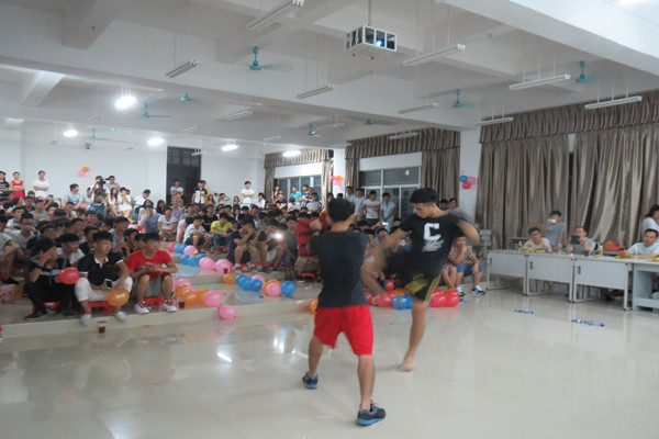 享受完那一刻的惊喜。14级学弟学妹么也丝毫不逊色,他们给现场带来了美妙的歌曲、熟练而唯美的吉他弹唱,台上演员深情演绎,台下观众温情聆听。在一阵动感十足的音乐过后,晚会又一拨高潮开始了——散打表演,一个完全由12级网络2班卢玉俊学长自己编制的节目。着硬而有力的散打,用自己特有的形体语言诠释生活,台上的他成为了舞台的霸主,成为了生活的掌权者。