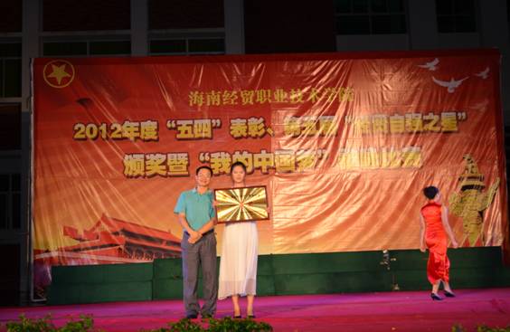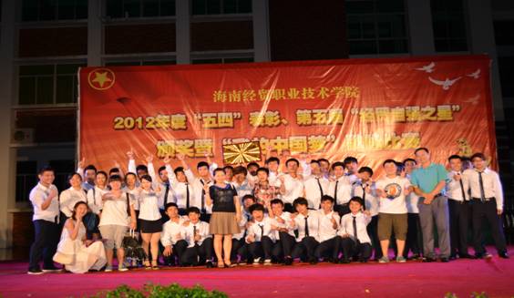 本系5月8日讯(信息技术系宣教部报道)5月7日晚7点30分,sunbet官方网站2013年“五四”表彰、第五届“经贸自强之星”颁奖暨歌咏比赛在经贸广场隆重举行,我系凭借《光荣啊,中国共青团》和《歌唱祖国》两首歌曲,以95.88的高分荣获本届歌咏大赛第一名,同时,信息技术系团总支荣获“中国梦 海南梦 我的梦”老员工演讲比赛优秀组织奖,11级多媒体一班、12级媒体班荣获“先进团支部”奖,12级电商2班荣获“腾讯微博建设先进团支部”,信息技术系下所属社团计算机协会荣获“优秀社团”称号,11级电子商务2班陈桃同学获得了第五届“经贸自强之星”称号,我系陈青云老师与11级媒体1班杨大山同学等为代表的10名同学荣获“优秀团干部”称号,12网络1班谭业等为代表的67人荣获“优秀团员”称号,符龙生(计算机协会)与梁其鈺(交谊舞协会)荣获“优秀社团指导老师”,11电商1班朱平同学为代表的23人荣获“优秀青年志愿者”称号。