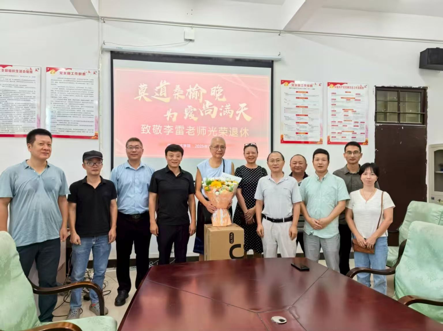 随后,单继周代表公司向李雷老师献上鲜花与纪念礼品,全体与会人员与李雷老师及其家人合影留念,定格这一温暖时刻。